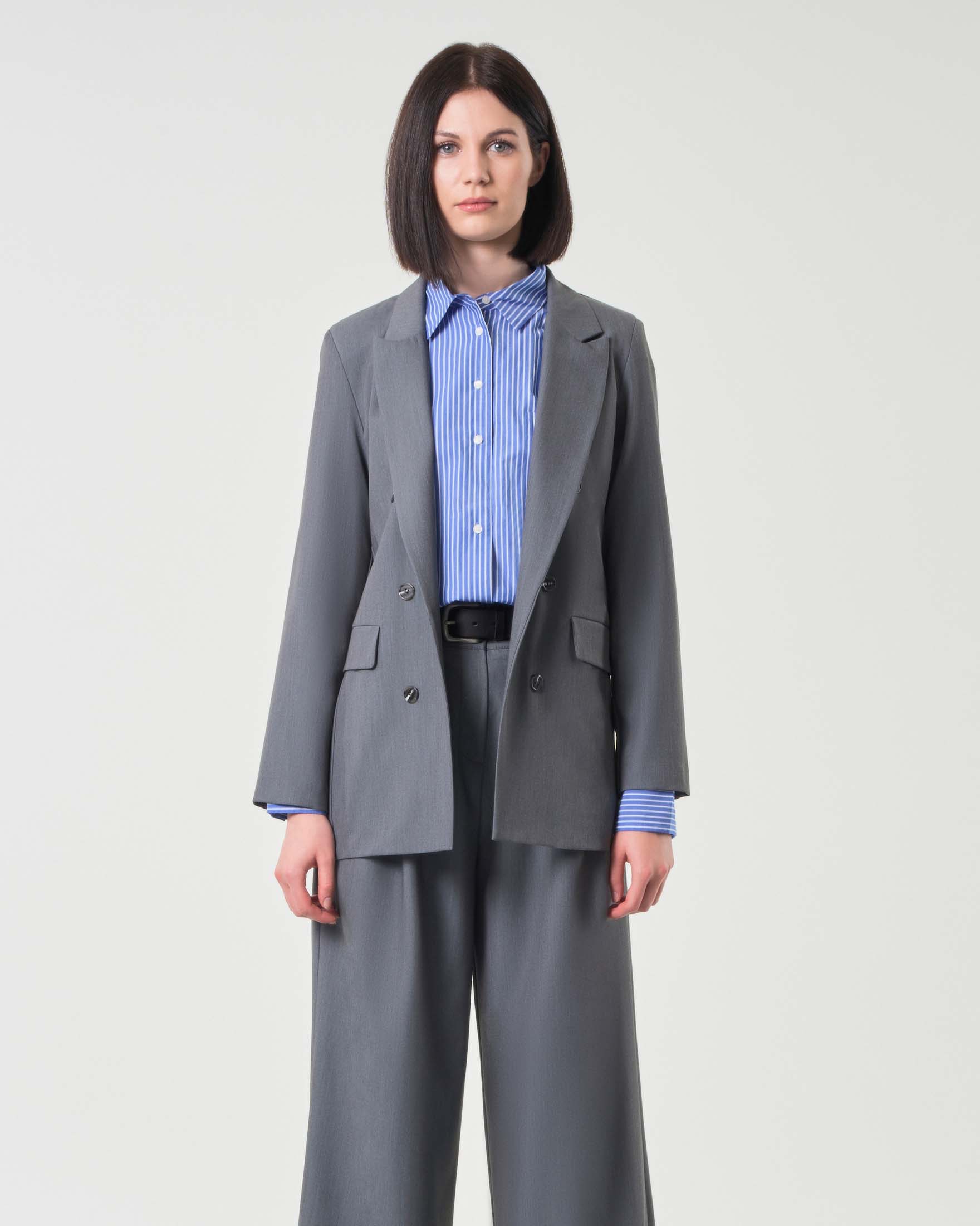 Blazer grigio chiaro in viscosa viscosa con bottoni applicati finto doppiopetto