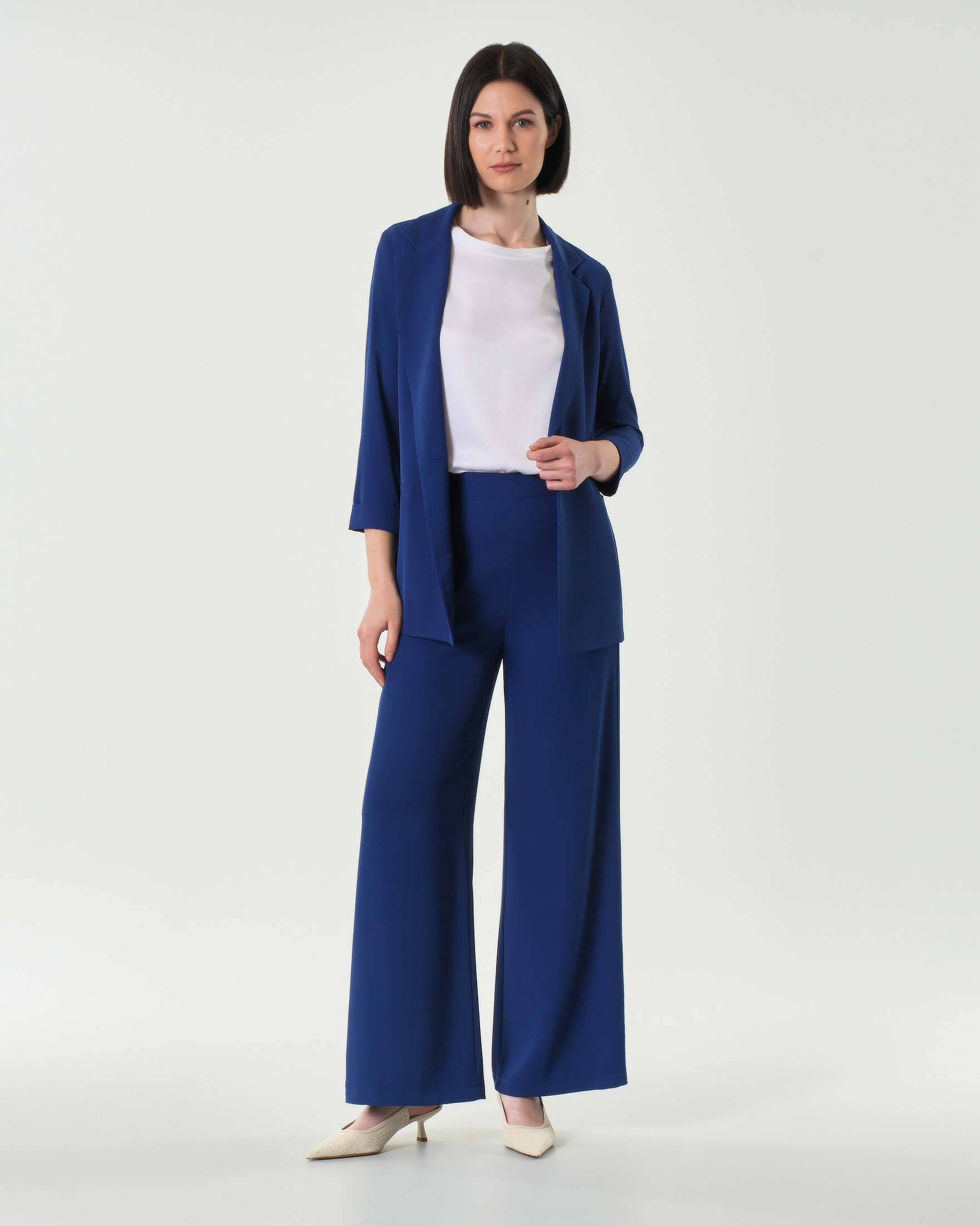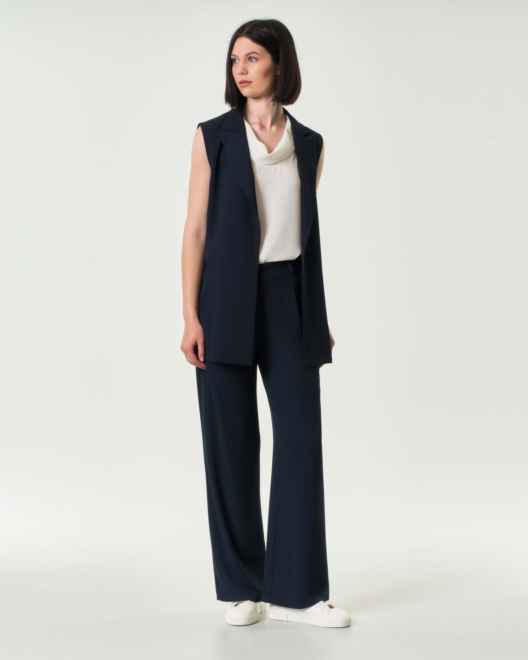 Gilet blu in crêpe con scollo a rever senza bottoni di chiusura