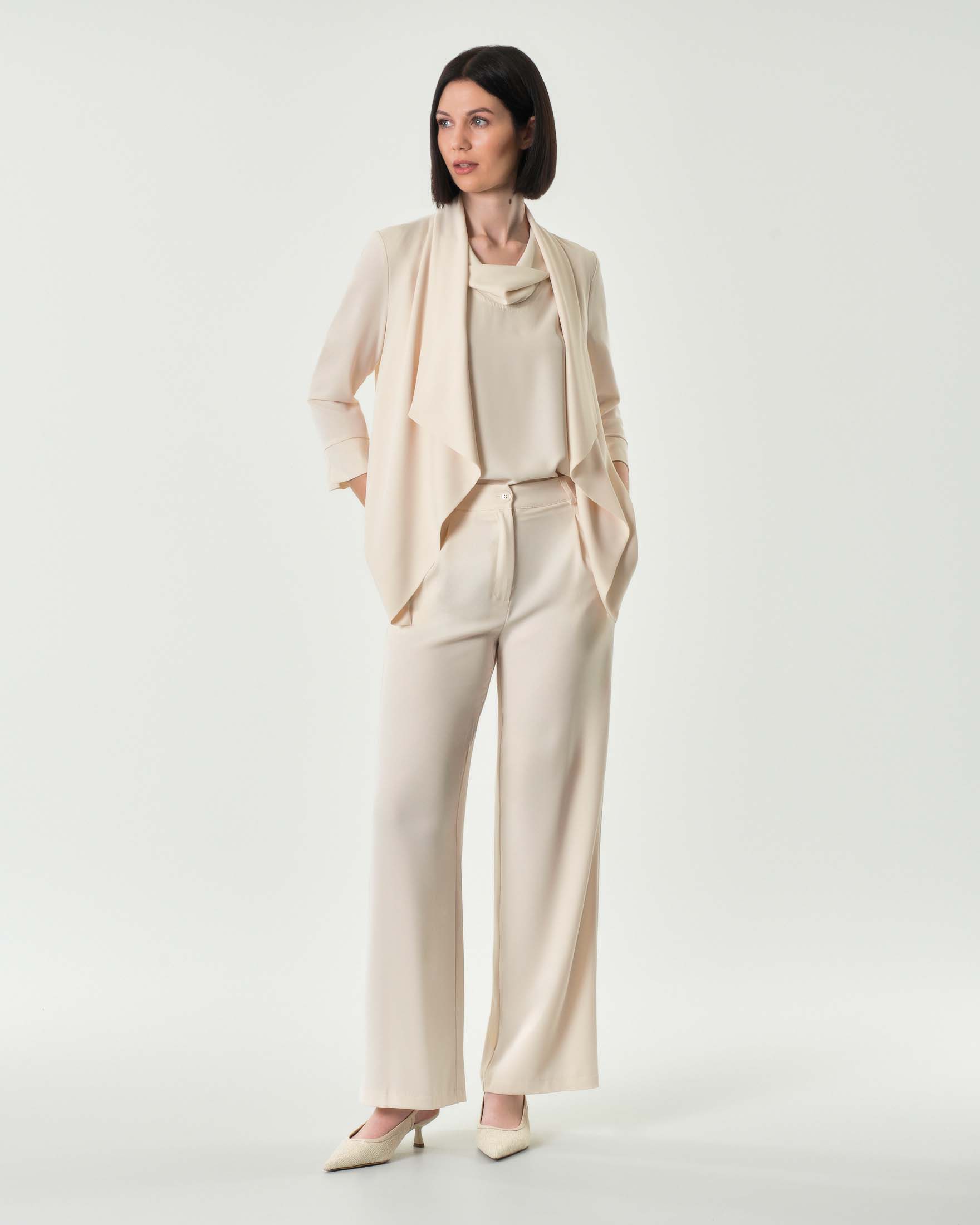 Blazer color burro in crêpe con scollo sciallato e maniche tre quarti
