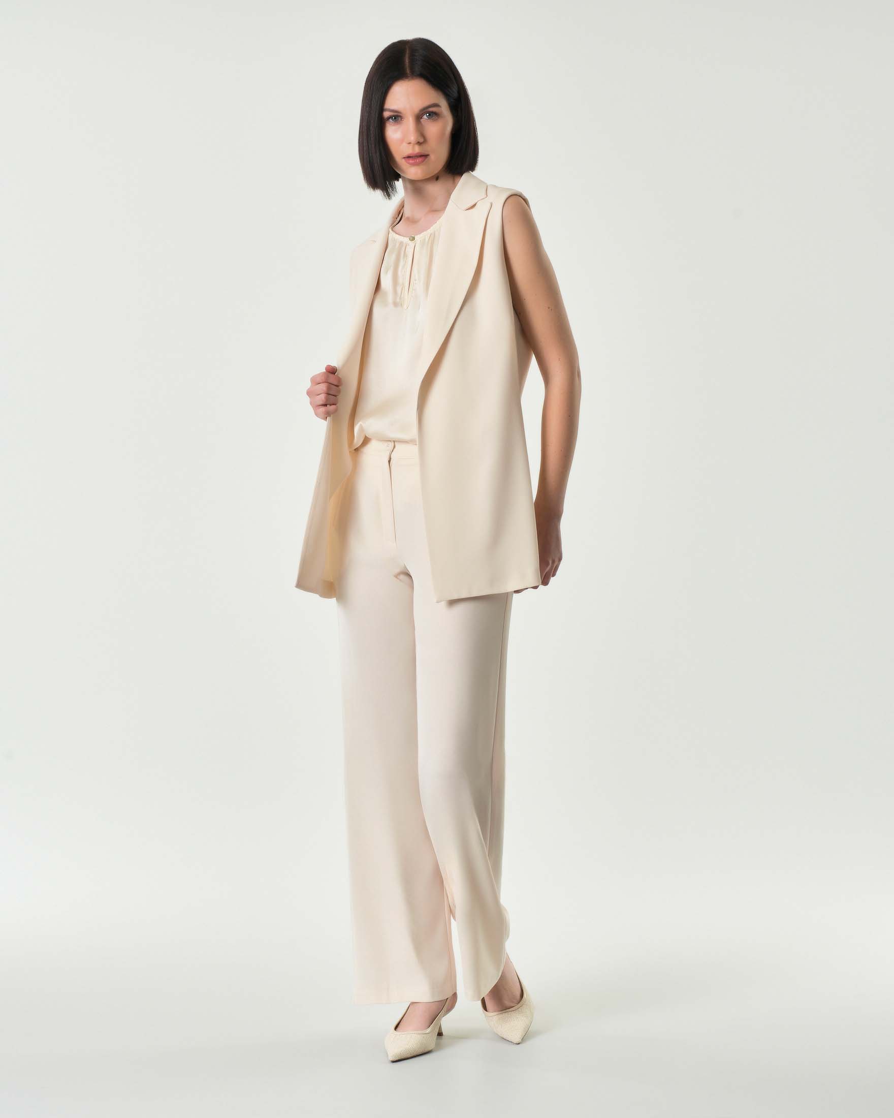 Gilet color burro in crêpe con scollo a rever senza bottoni di chiusura