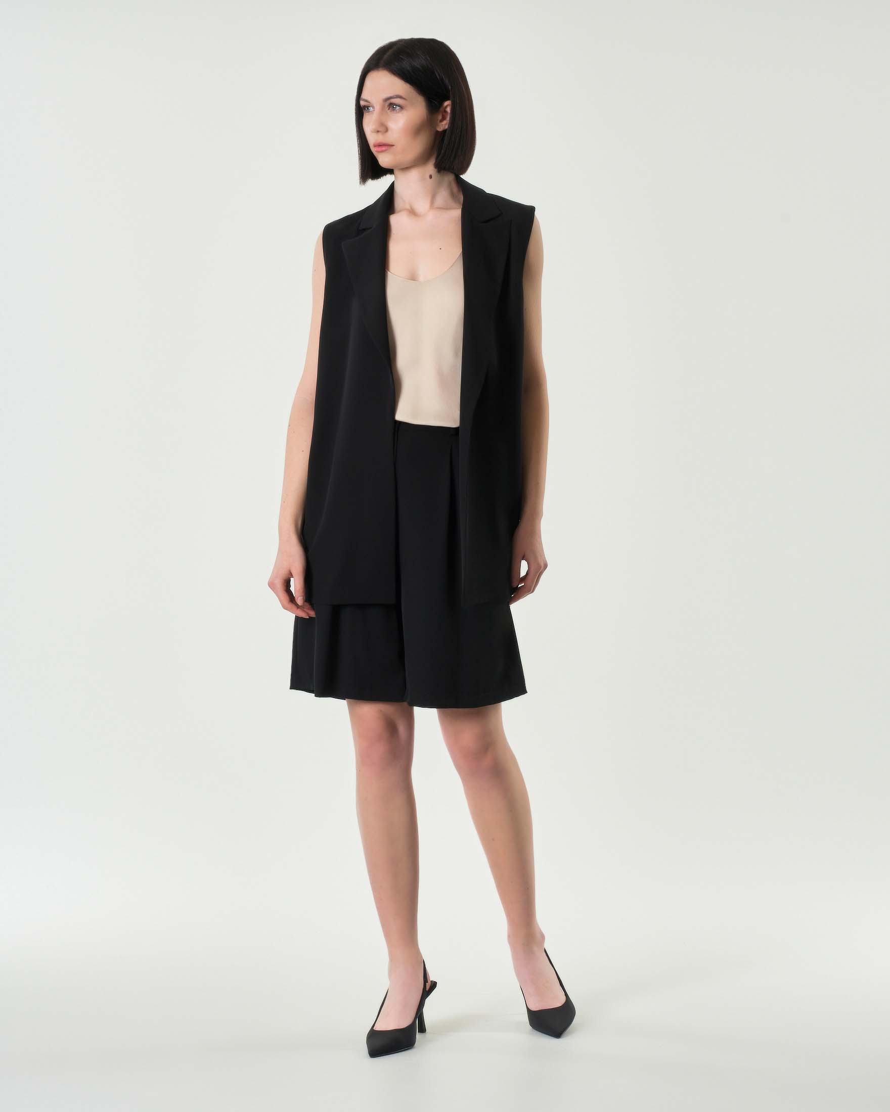 Gilet nero in crêpe con scollo a rever senza bottoni di chiusura
