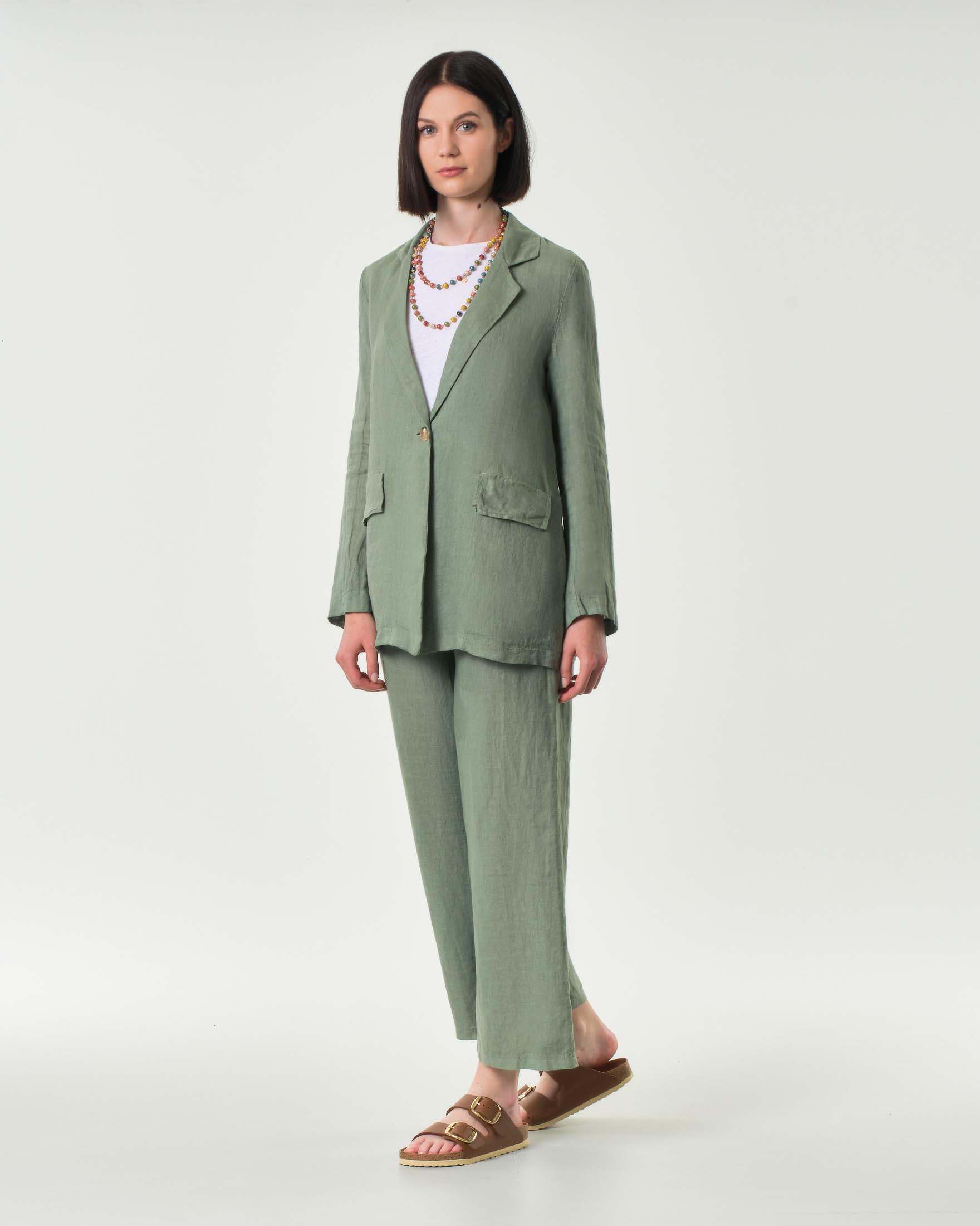 Blazer Hlo! verde salvia a un bottone in puro lino sfoderato con scollo a rever