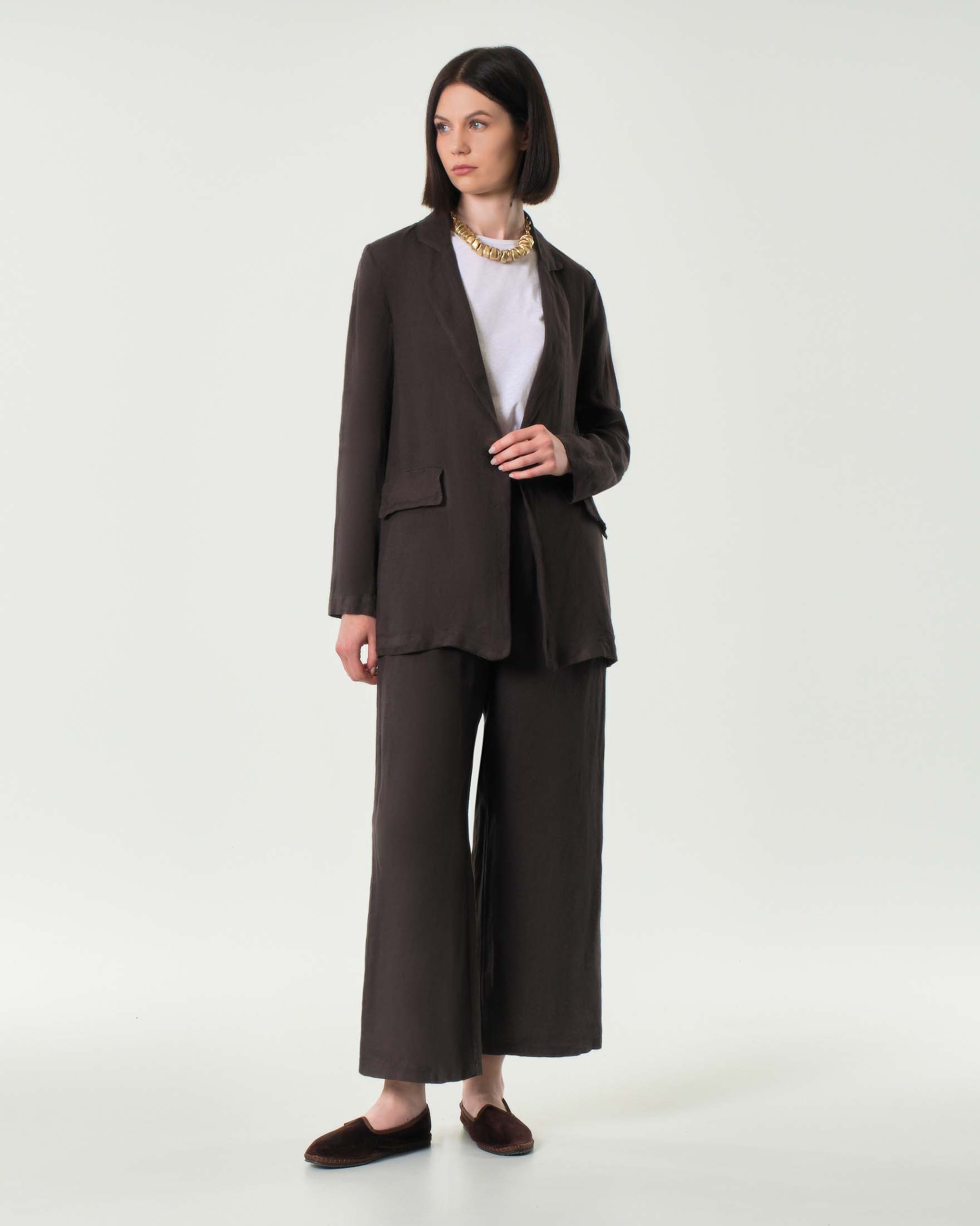 Blazer marrone Hlo! a un bottone in puro lino sfoderato con scollo a rever