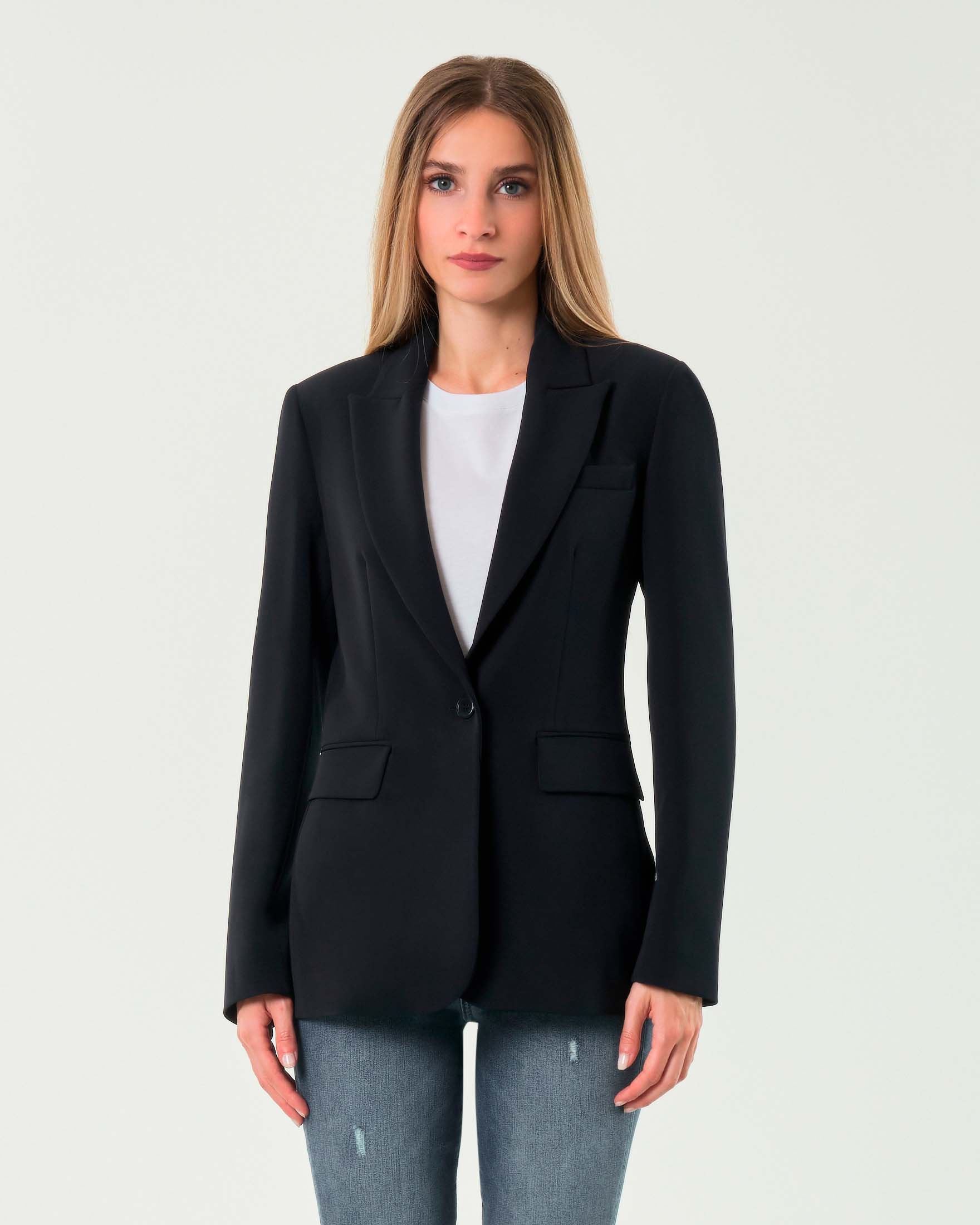 Blazer lungo blu Liu Jo in twill stretch rever a lancia e chiusura monopetto ad un bottone