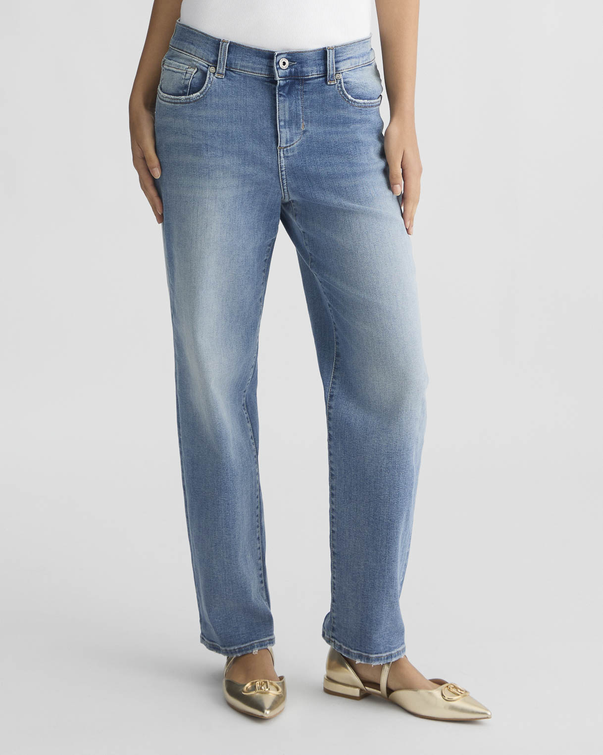 Jeans boyfriend a vita bassa in cotone stretch lavaggio medio used super stone washed