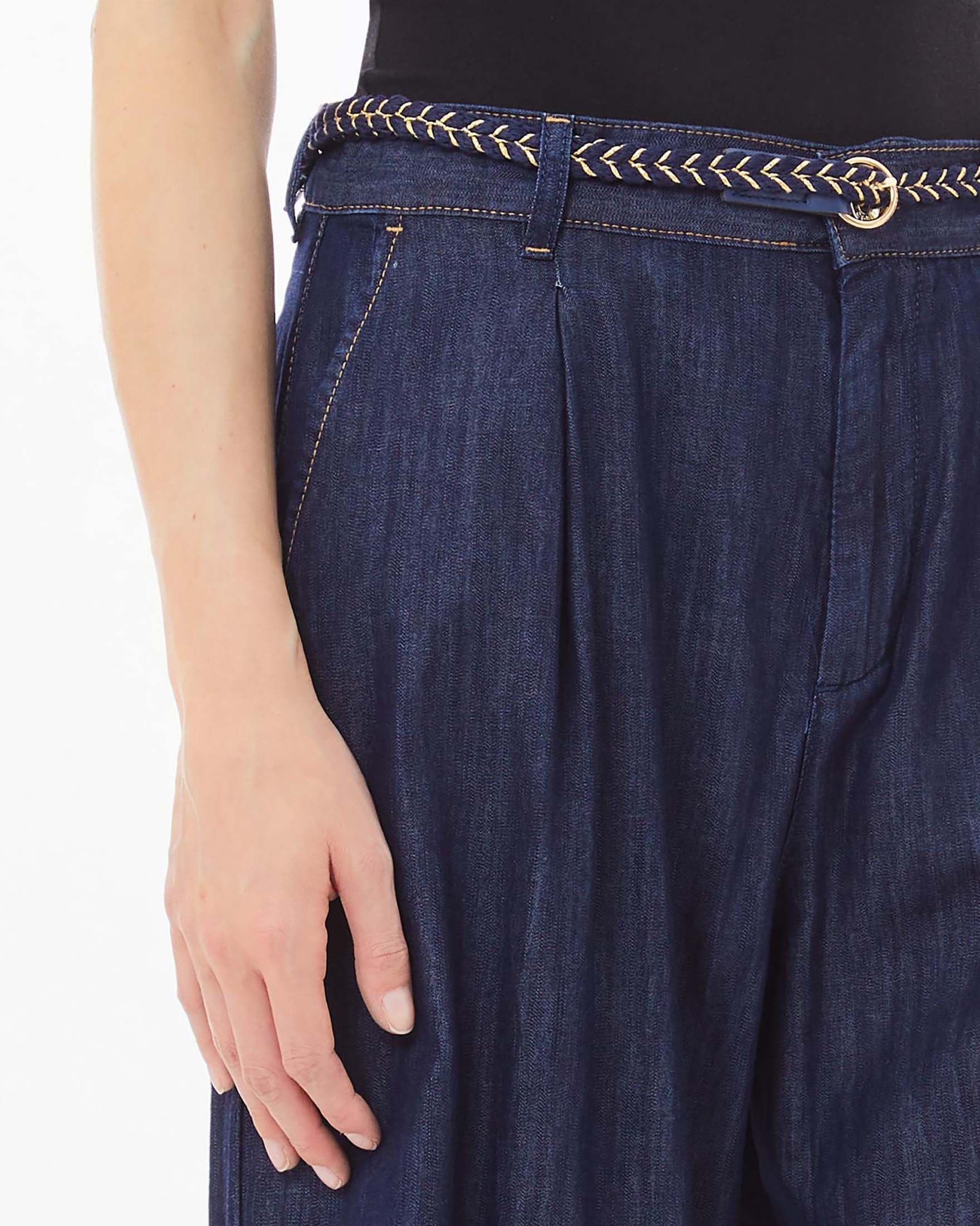 Jeans ampi cropped in tencel lavaggio scuro con piega stirata e coulisse in vita