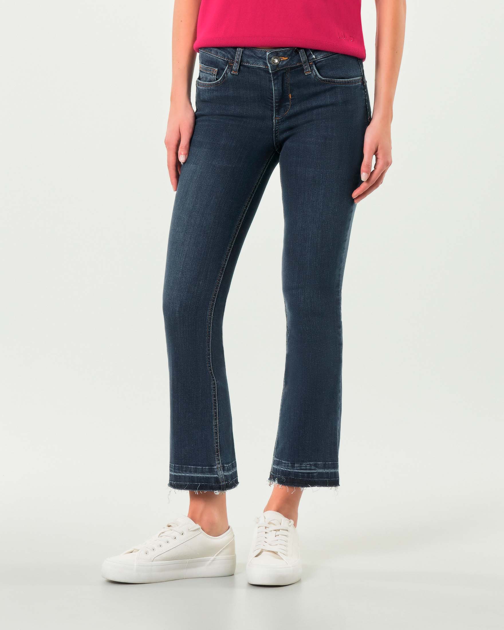 Jeans a trombetta Liu Jo blu stone washed in misto cotone stretch con orlo spiegato