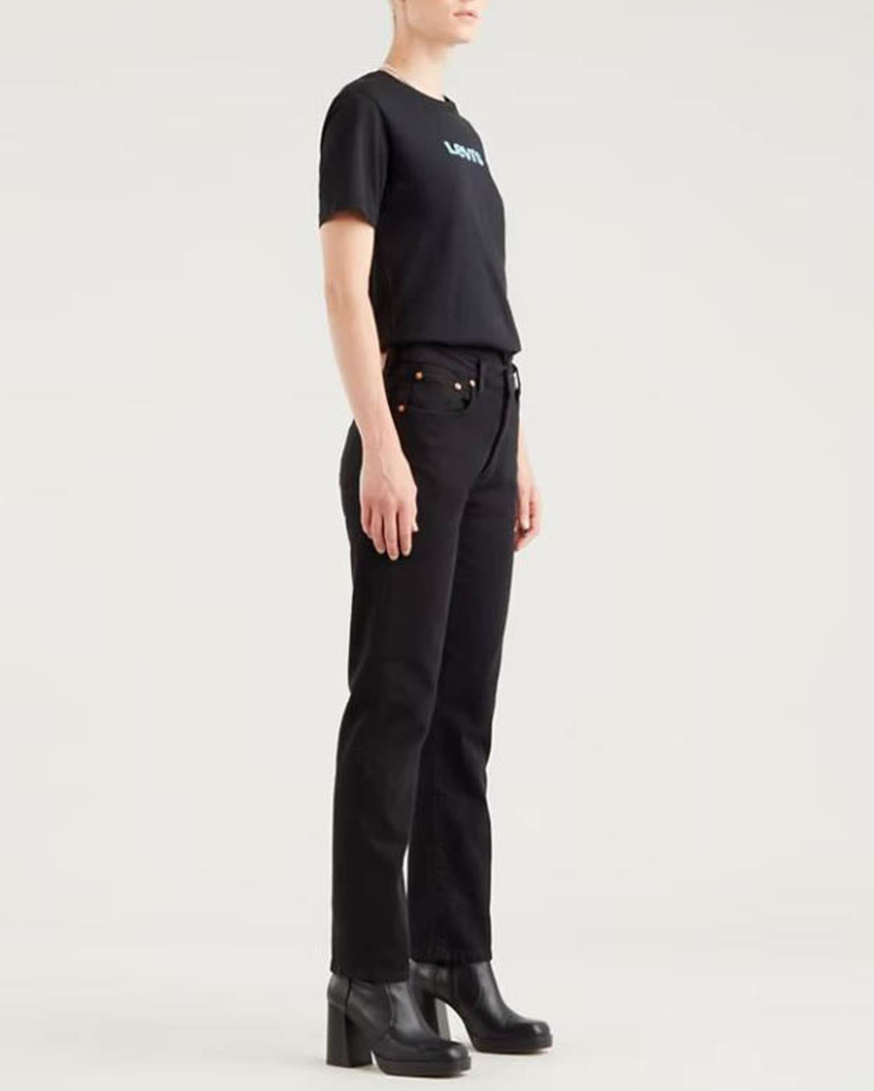 Jeans 501 neri cropped in cotone bull stretch a vita alta