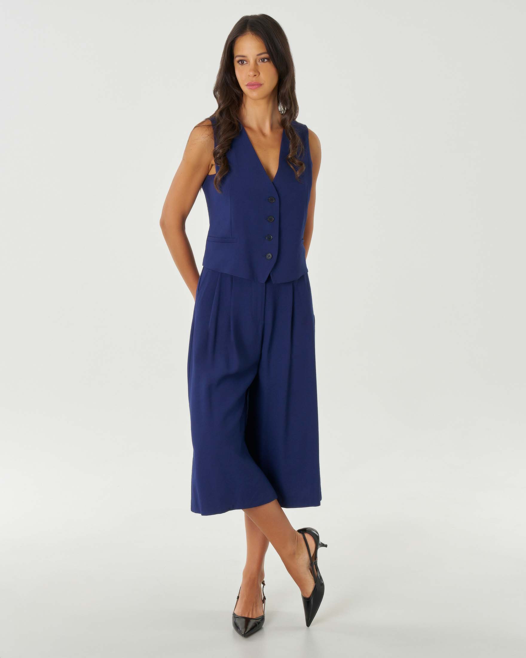 Pantaloni cropped blu royal in misto viscosa con doppia pinces in vita