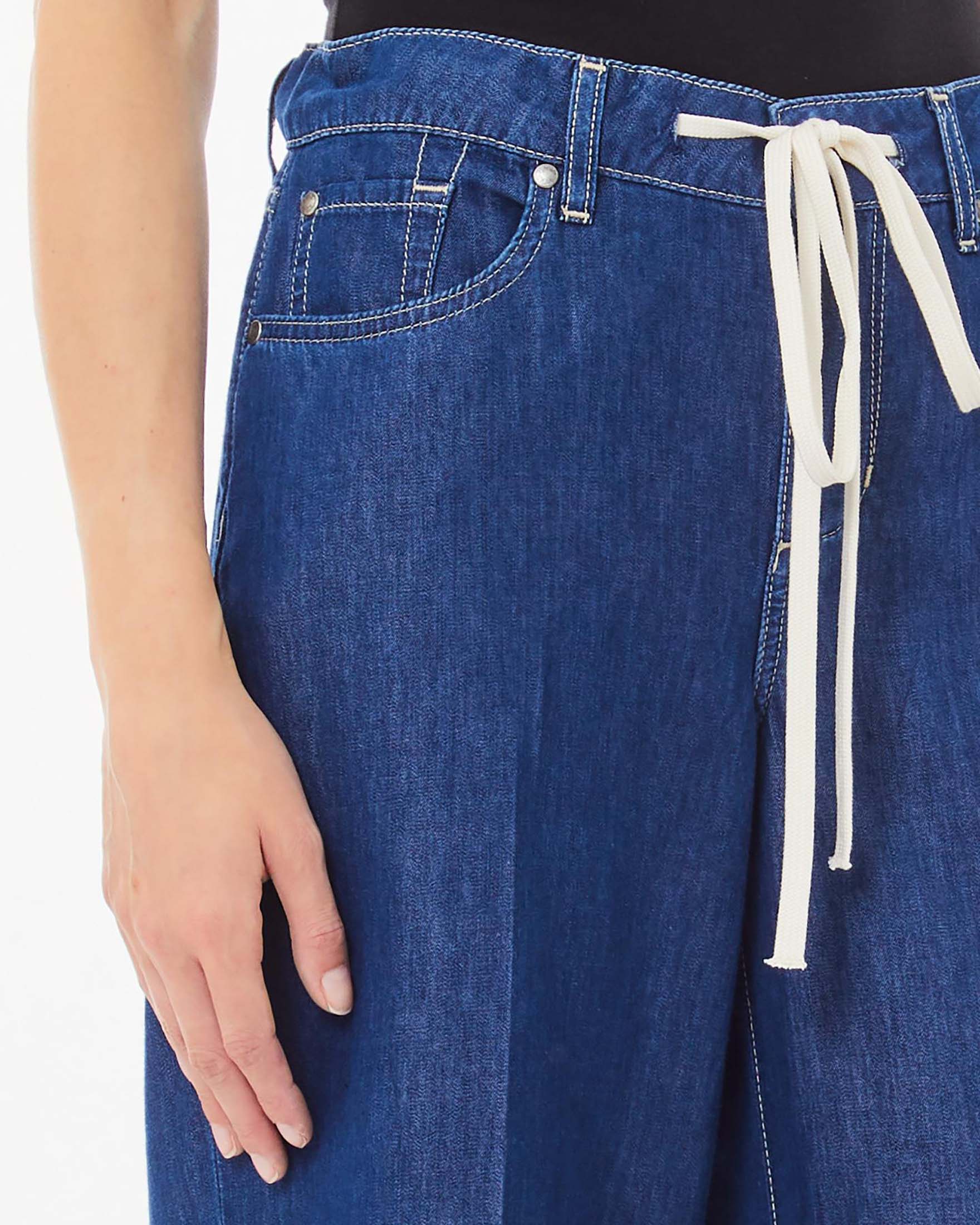 Jeans ampi cropped in tencel lavaggio scuro con piega stirata e coulisse in vita