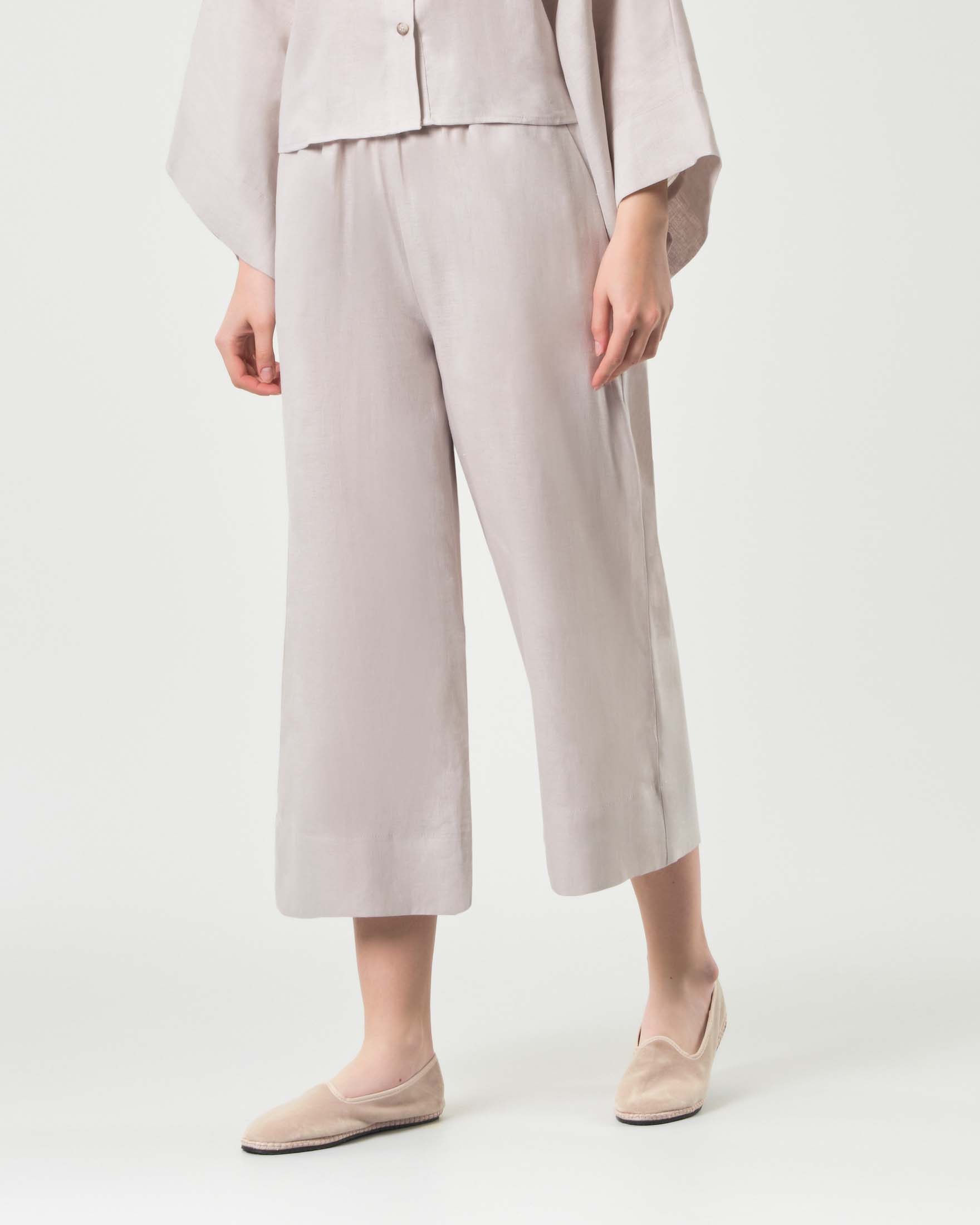 Pantaloni cropped color ghiacchio in lino dalla linea ampia con elastico in vita