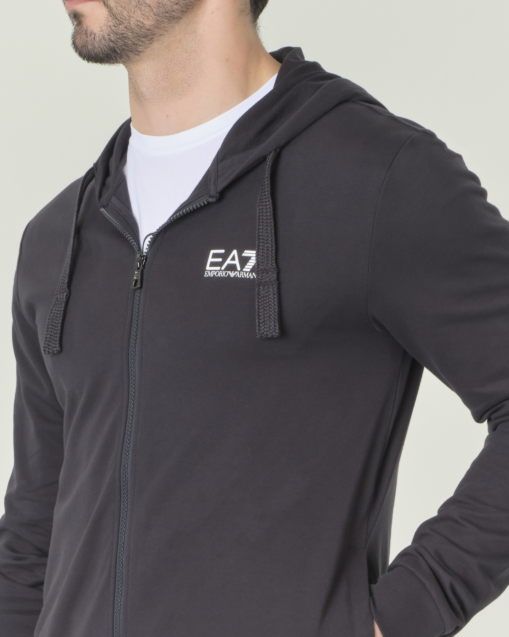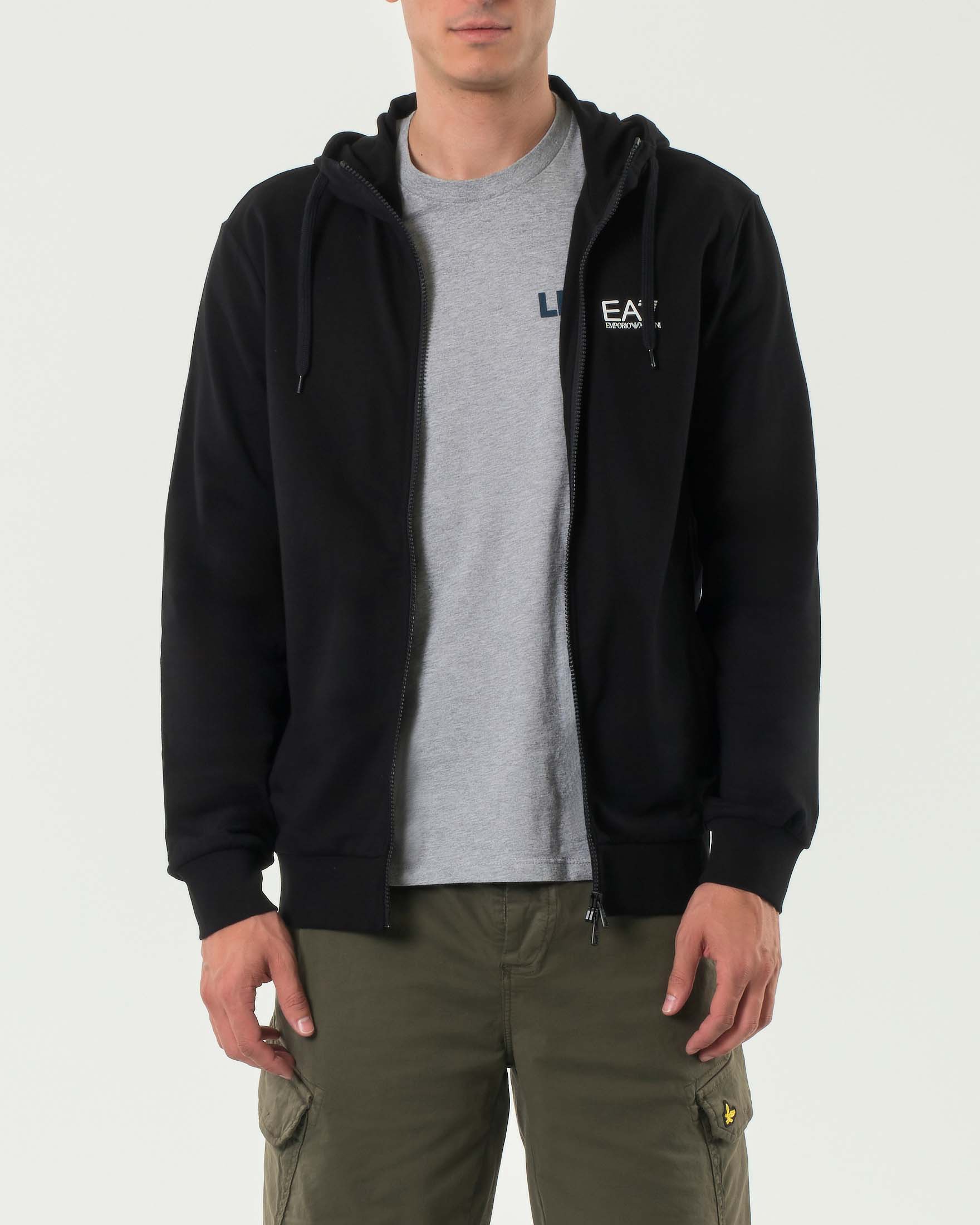 Felpa EA7 nera in puro cotone con cappuccio e cerniera