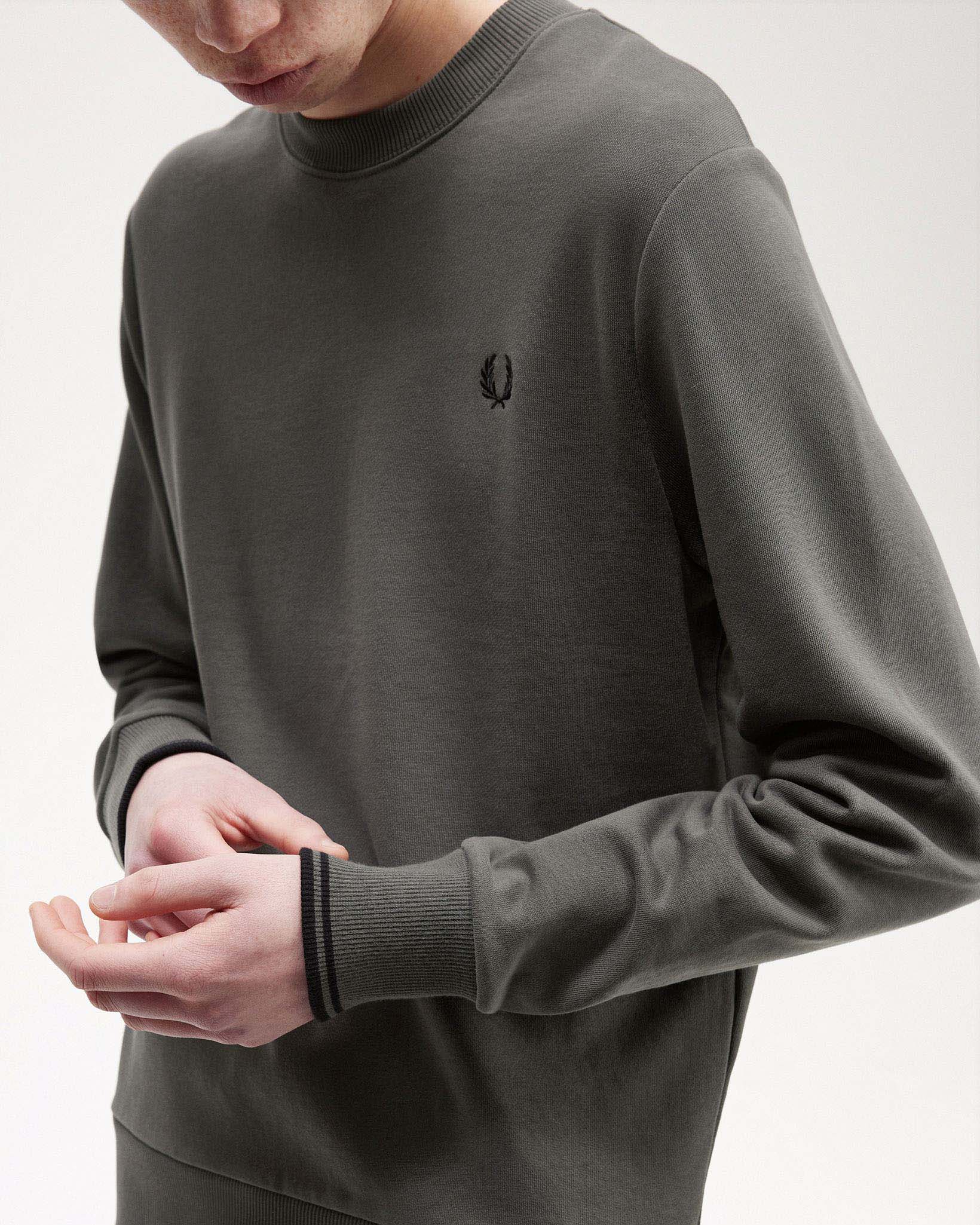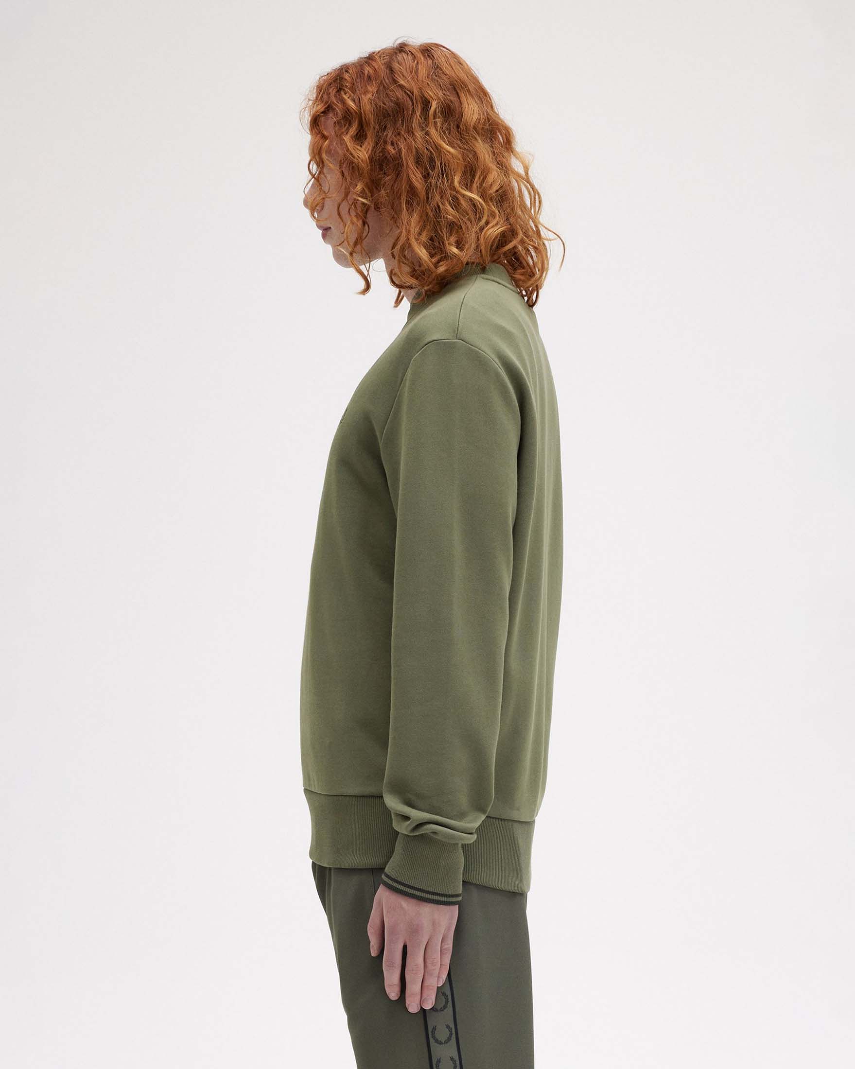 Felpa verde militare girocollo con bordino verde scuro sulla manica
