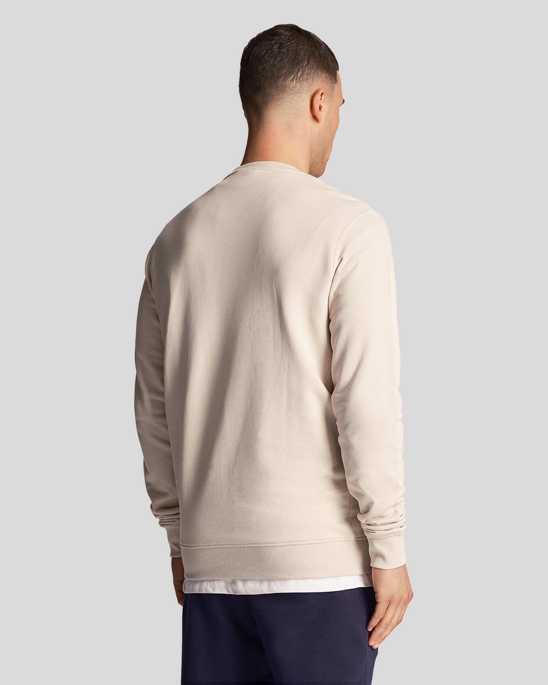Felpa girocollo color sabbia in cotone con logo aquila gialla sul petto