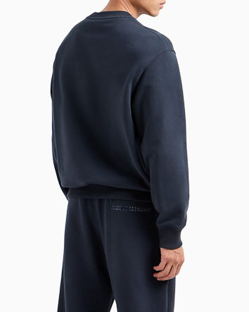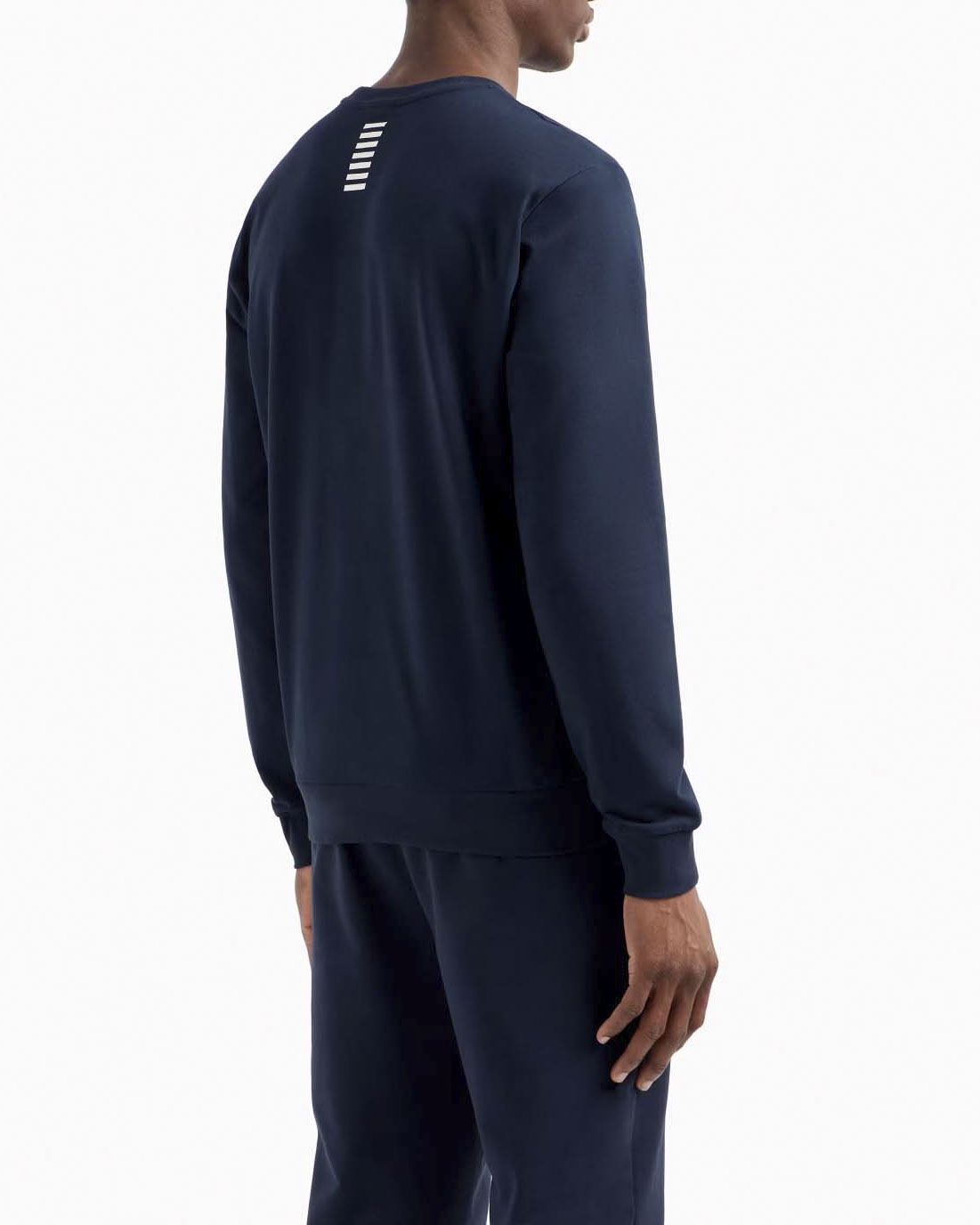 Felpa EA7 girocollo blu in puro cotone con logo stampato sul petto