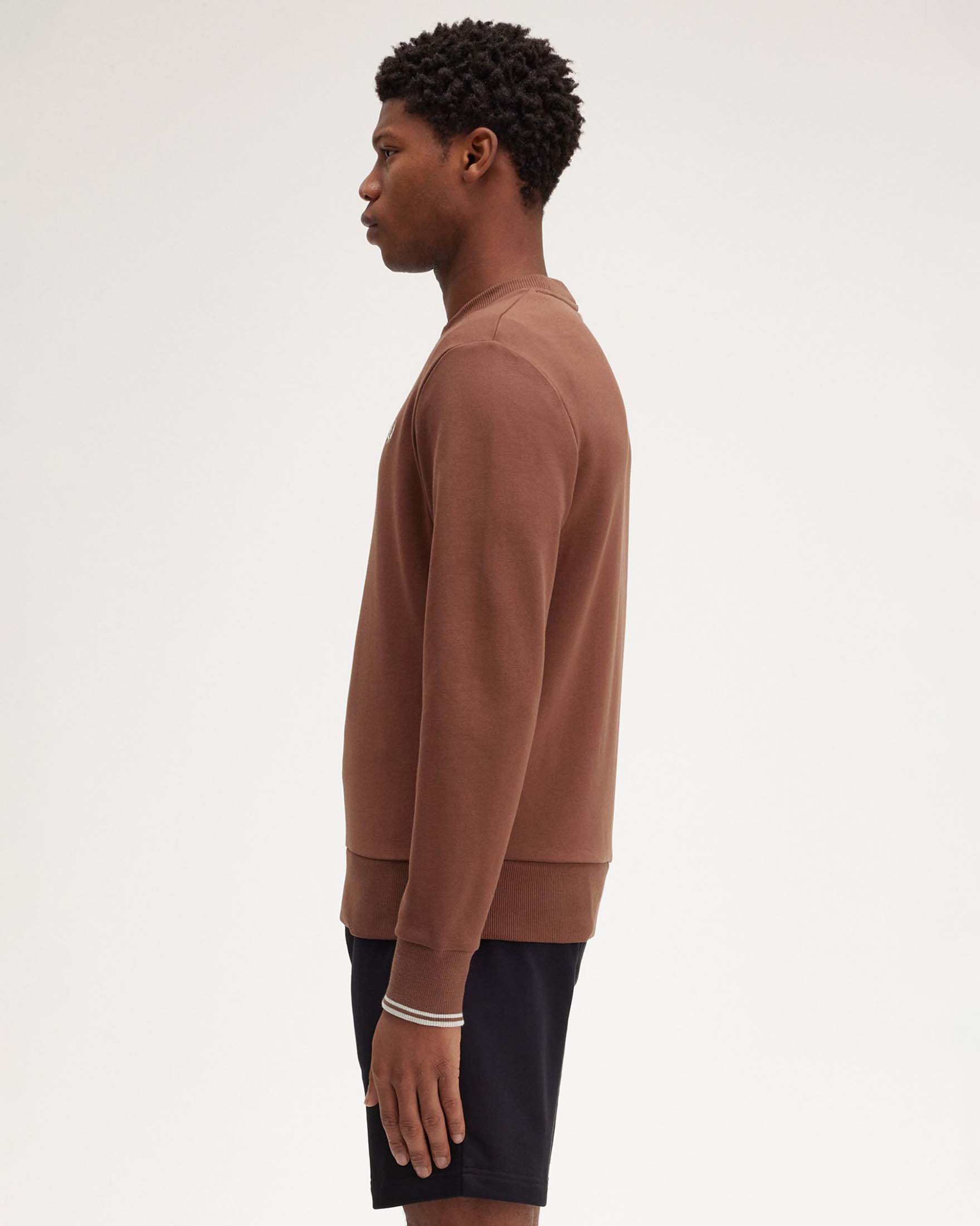 Felpa color coccio girocollo con bordino bianco sulla manica