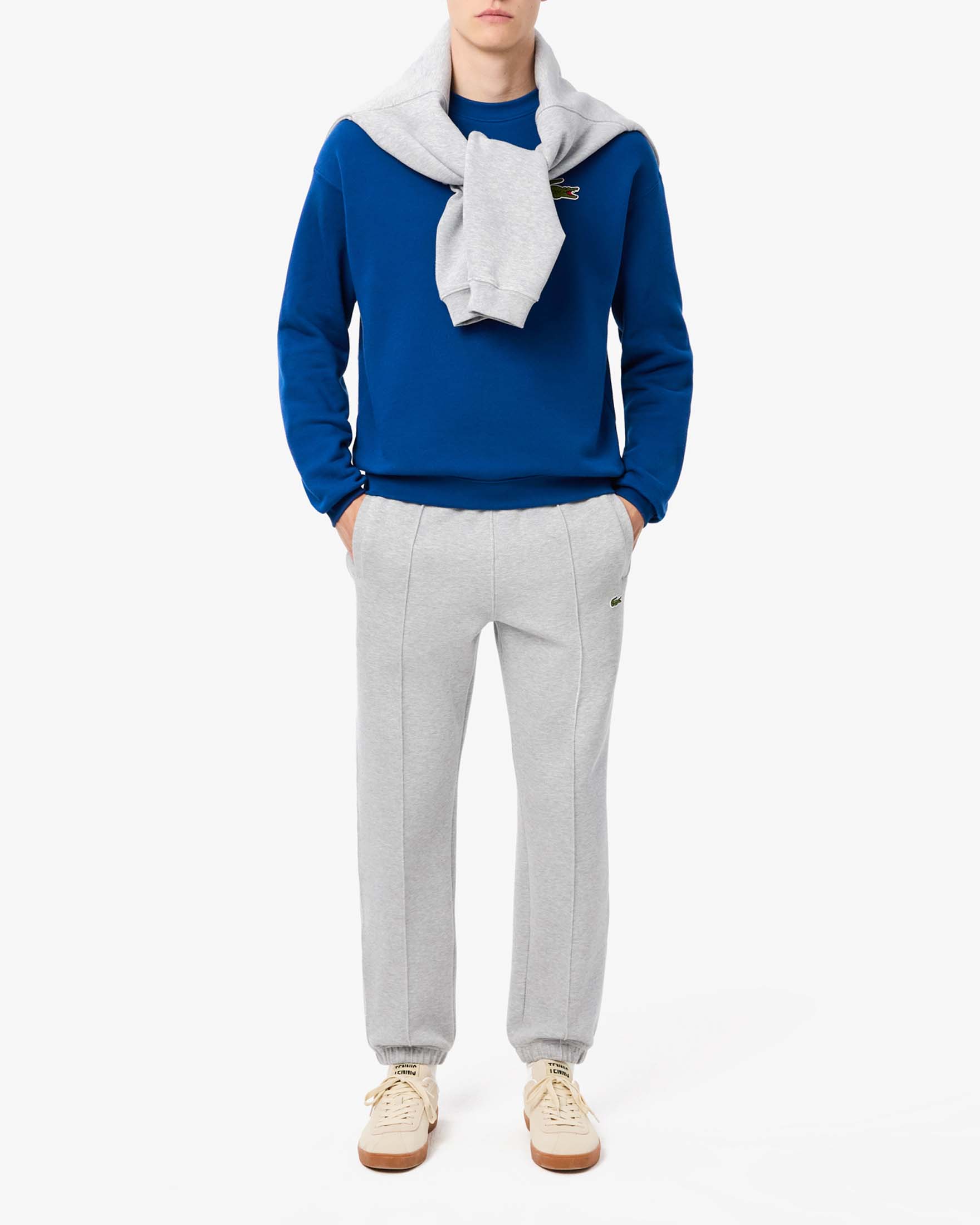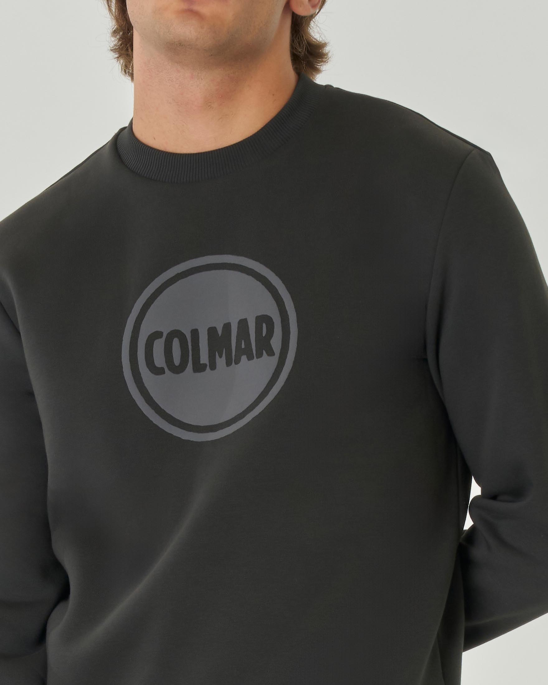 Felpa grigio antracite girocollo con logo bollo applicato sul petto