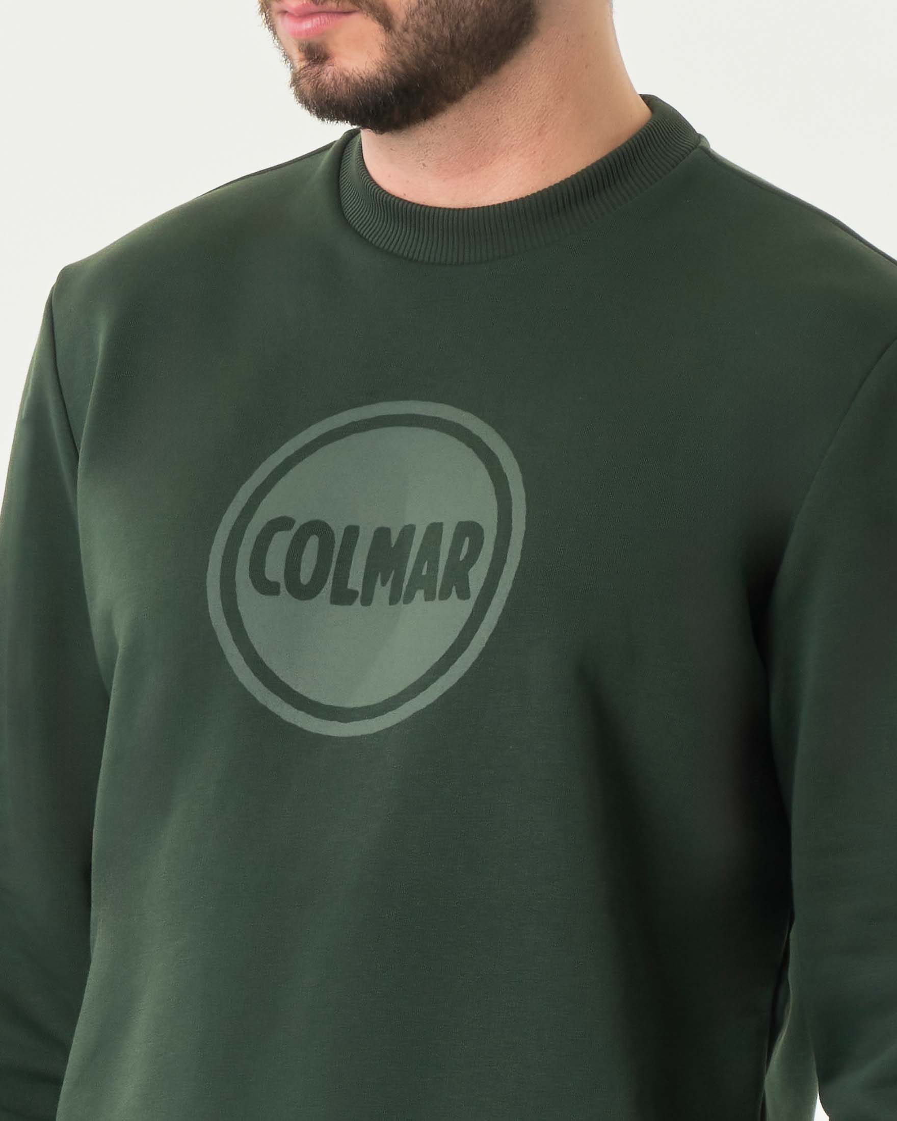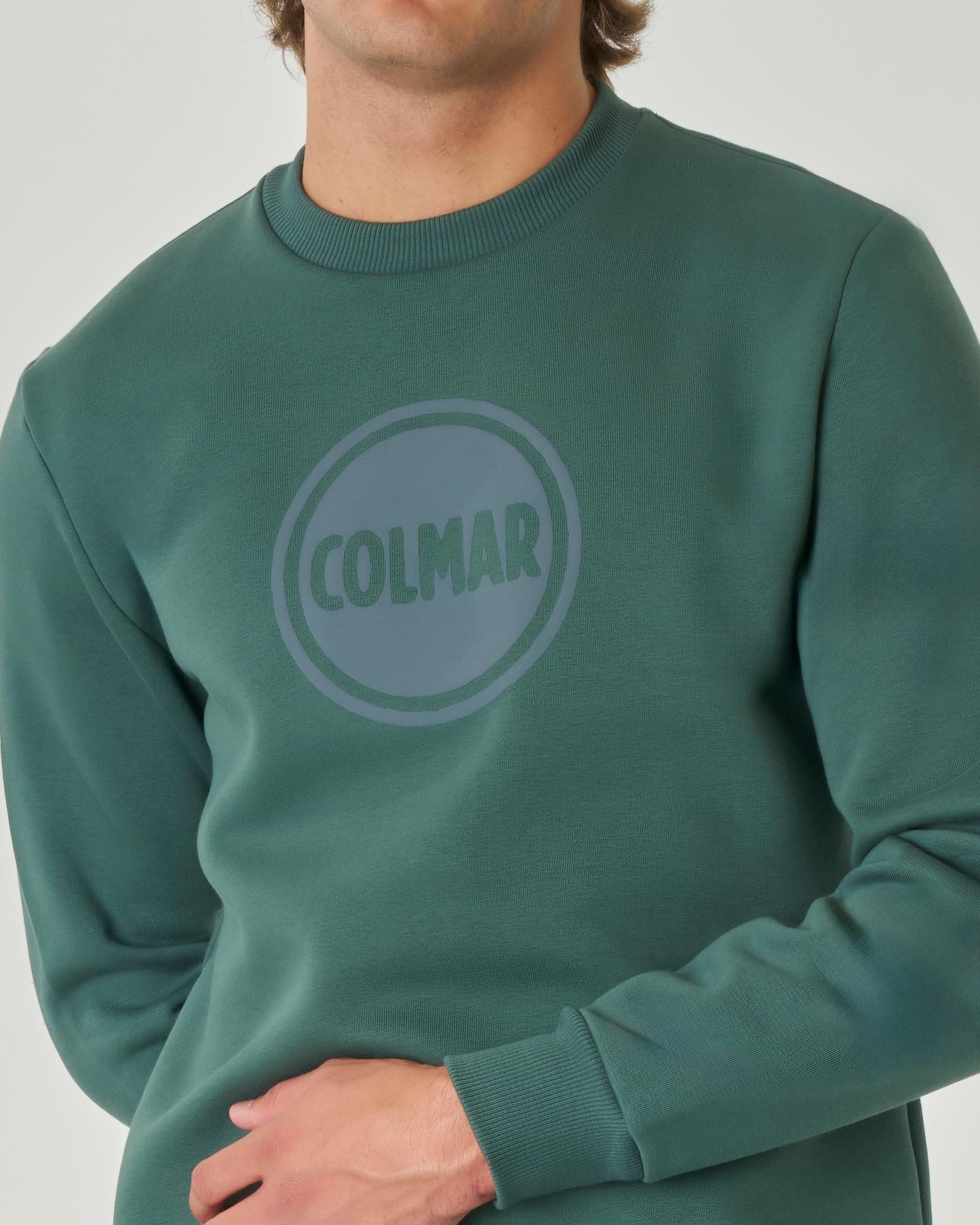 Felpa verde girocollo con logo bollo stampato tono su tono sul petto