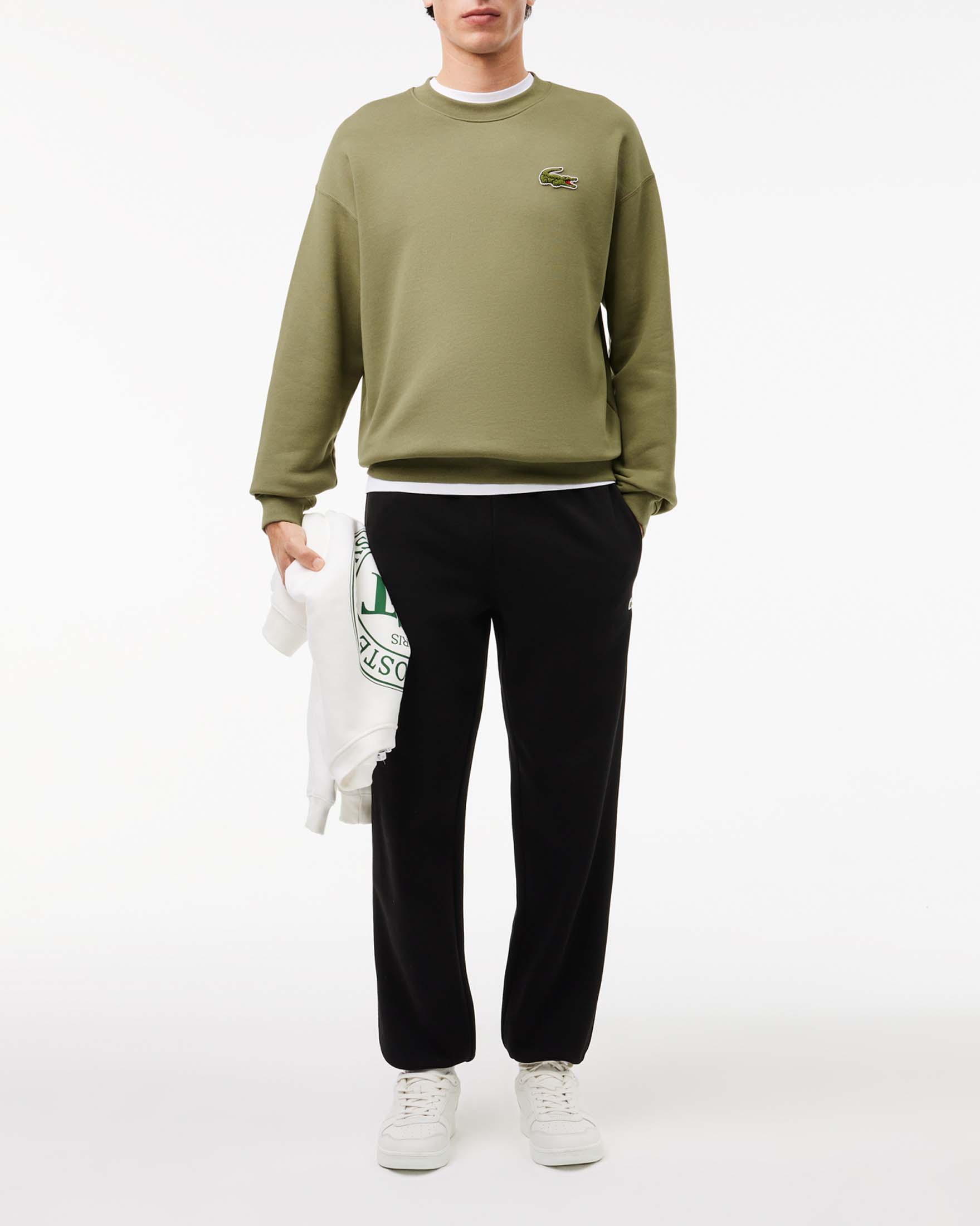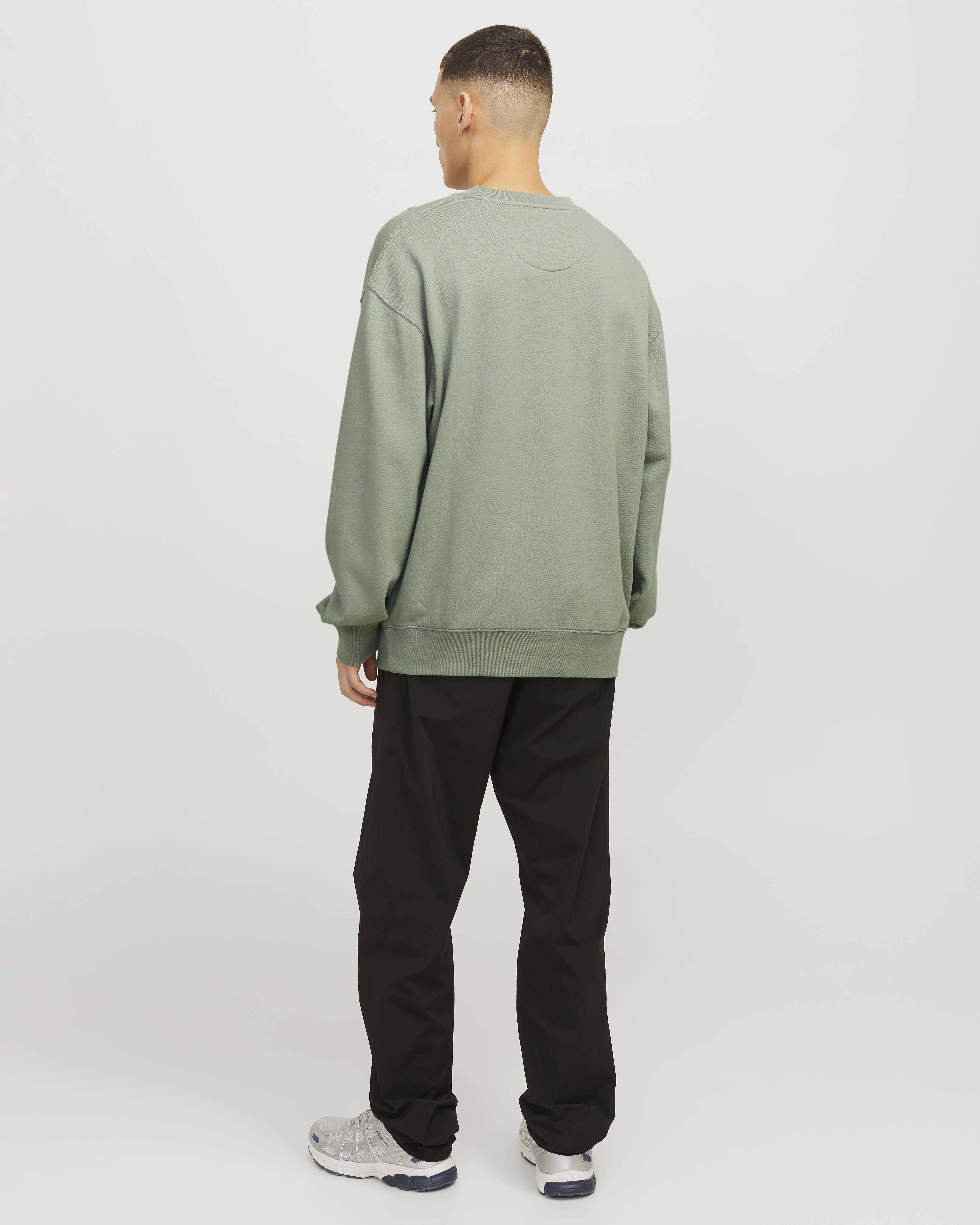 Felpa girocollo salvia loose-fit in cotone con spalle scese