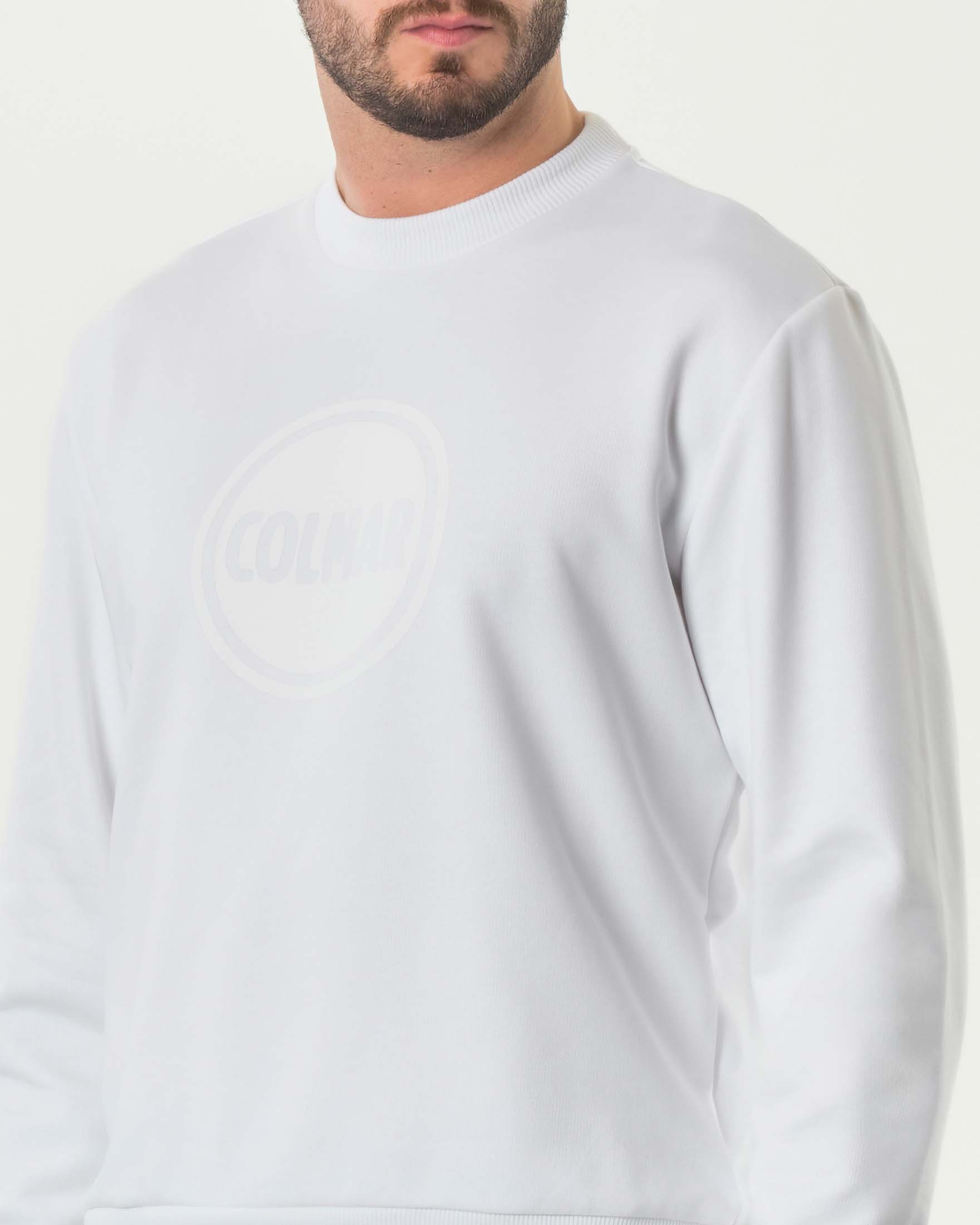 Felpa bianca girocollo con logo bollo stampato tono su tono sul petto