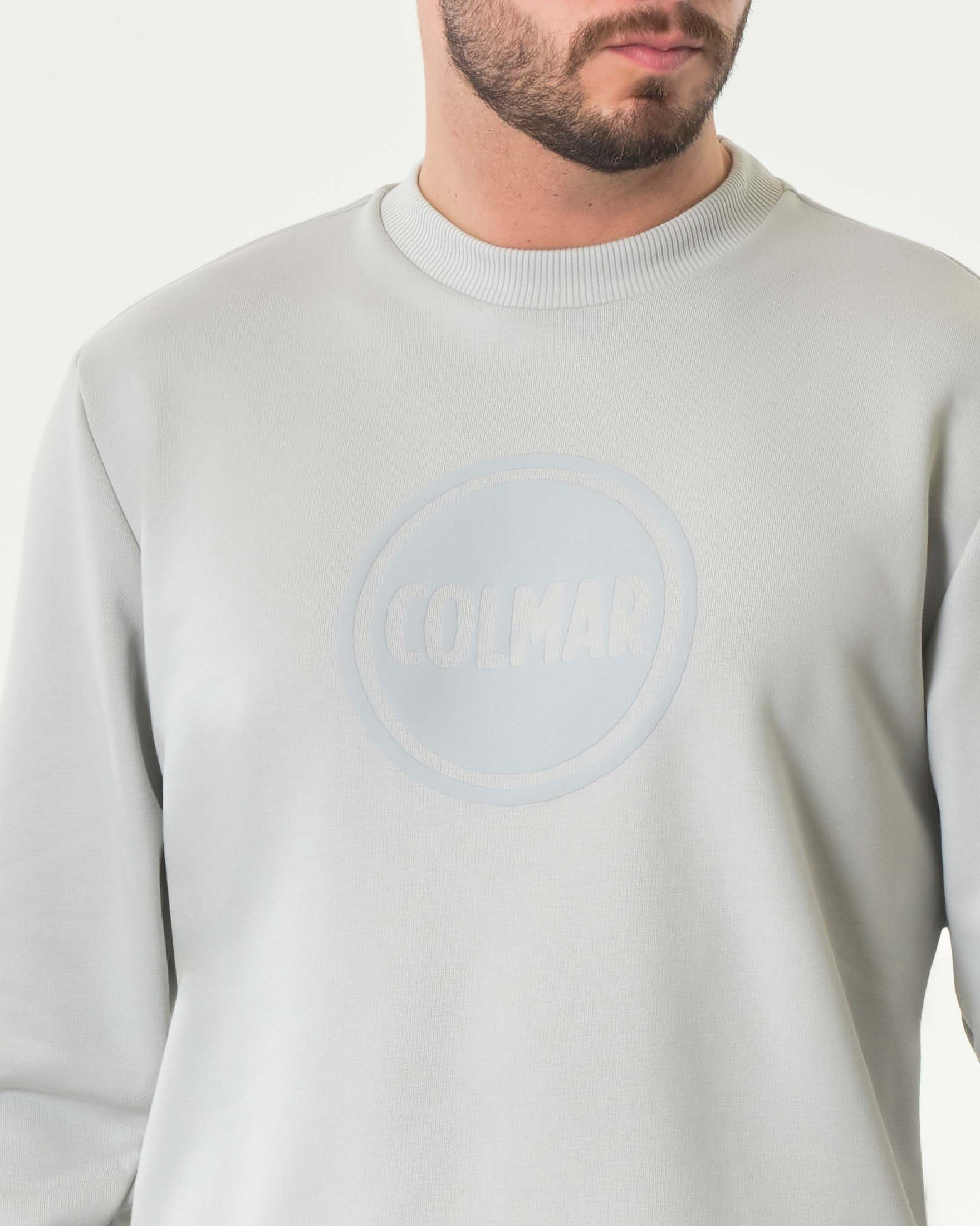 Felpa color ghiaccio girocollo con logo bollo stampato tono su tono sul petto
