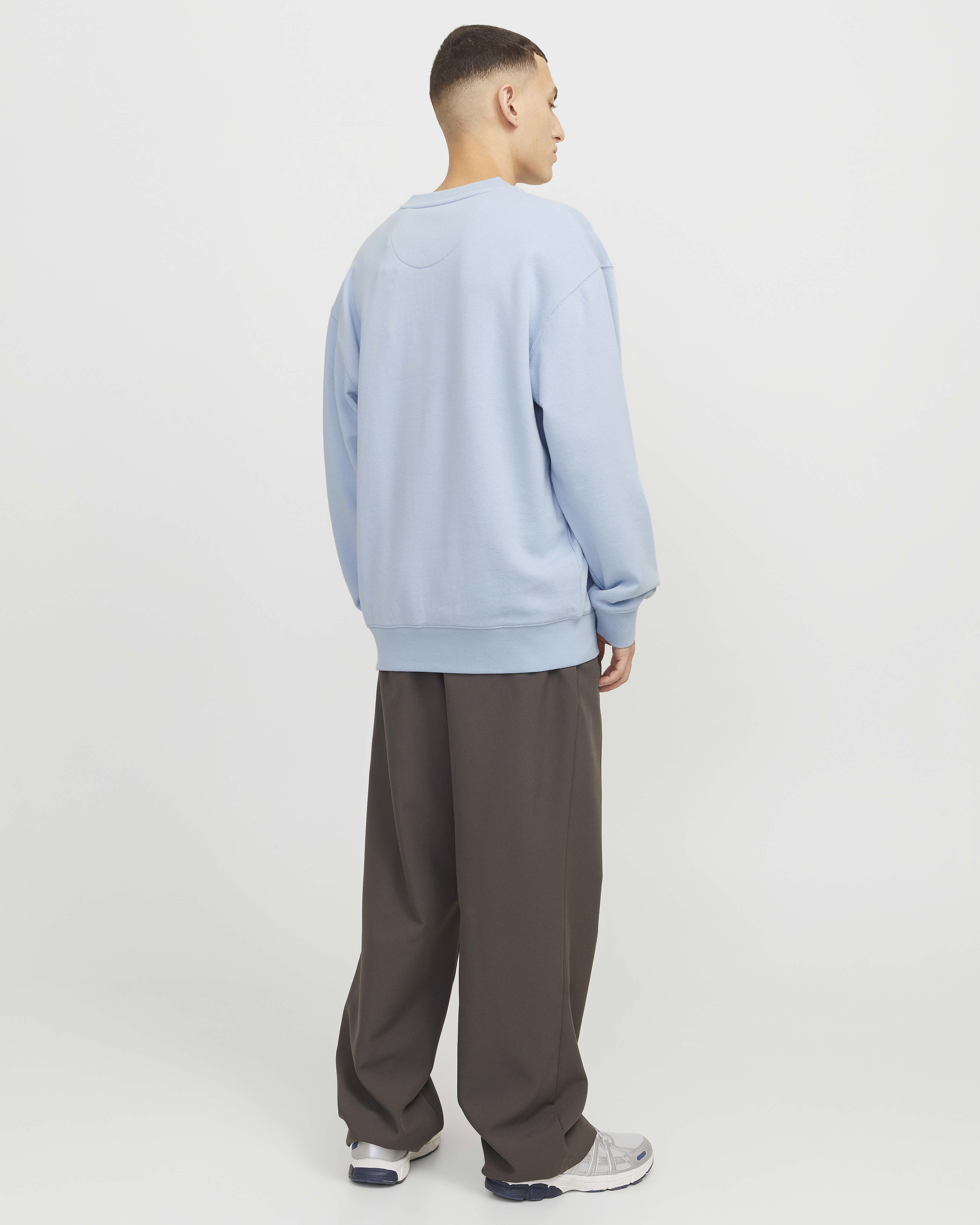 Felpa girocollo azzurra loose-fit in cotone con spalle scese