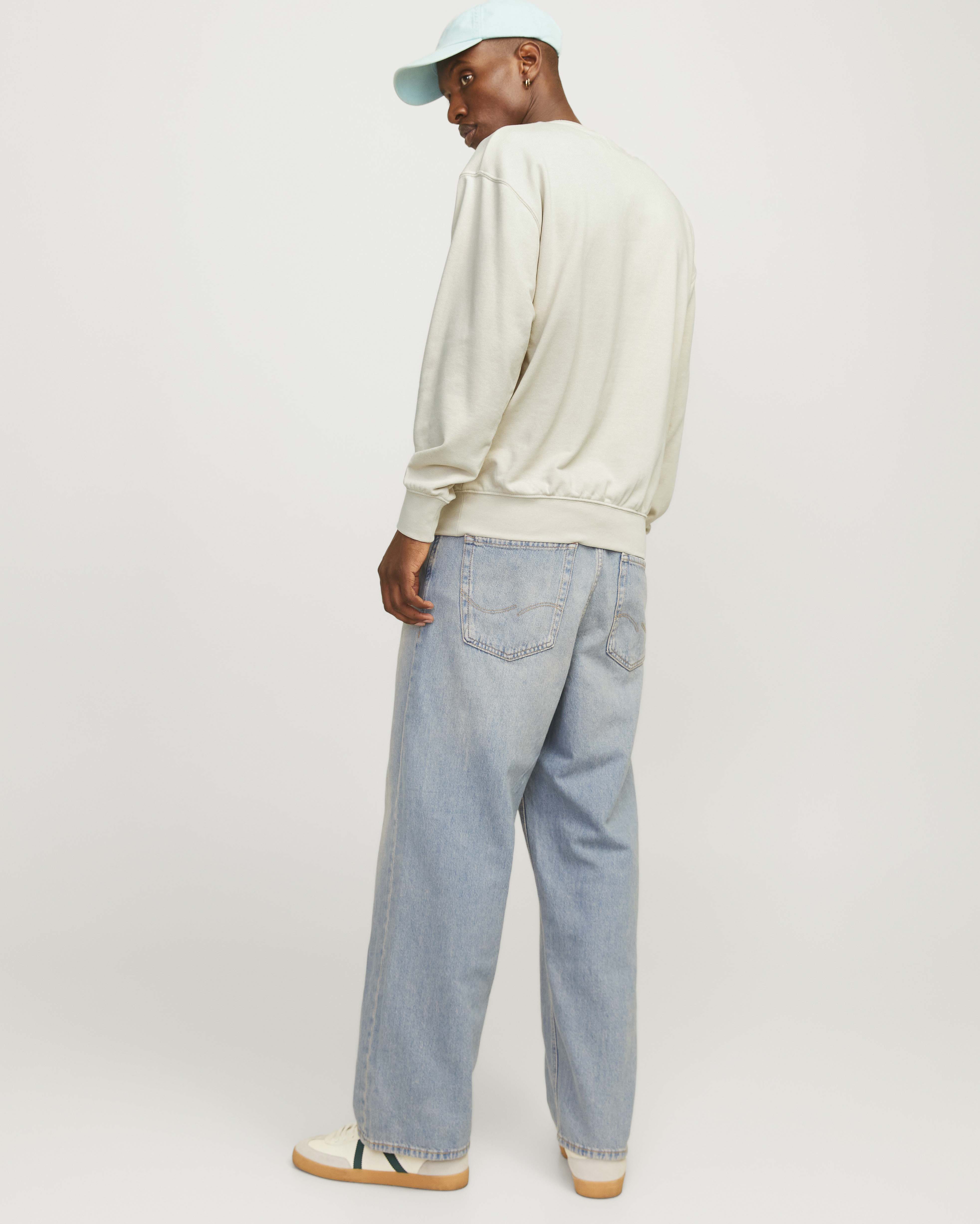 Felpa girocollo avorio loose-fit in cotone con spalle scese