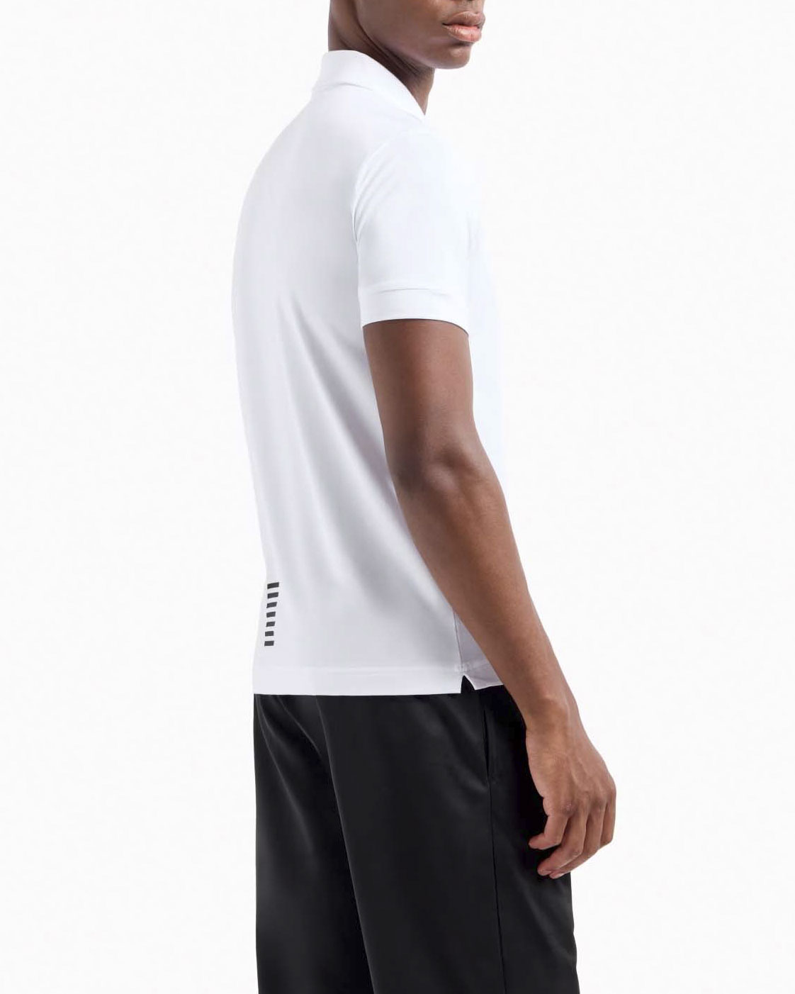 Polo EA7 bianca in jersey di cotone stretch con logo EA7 sul petto