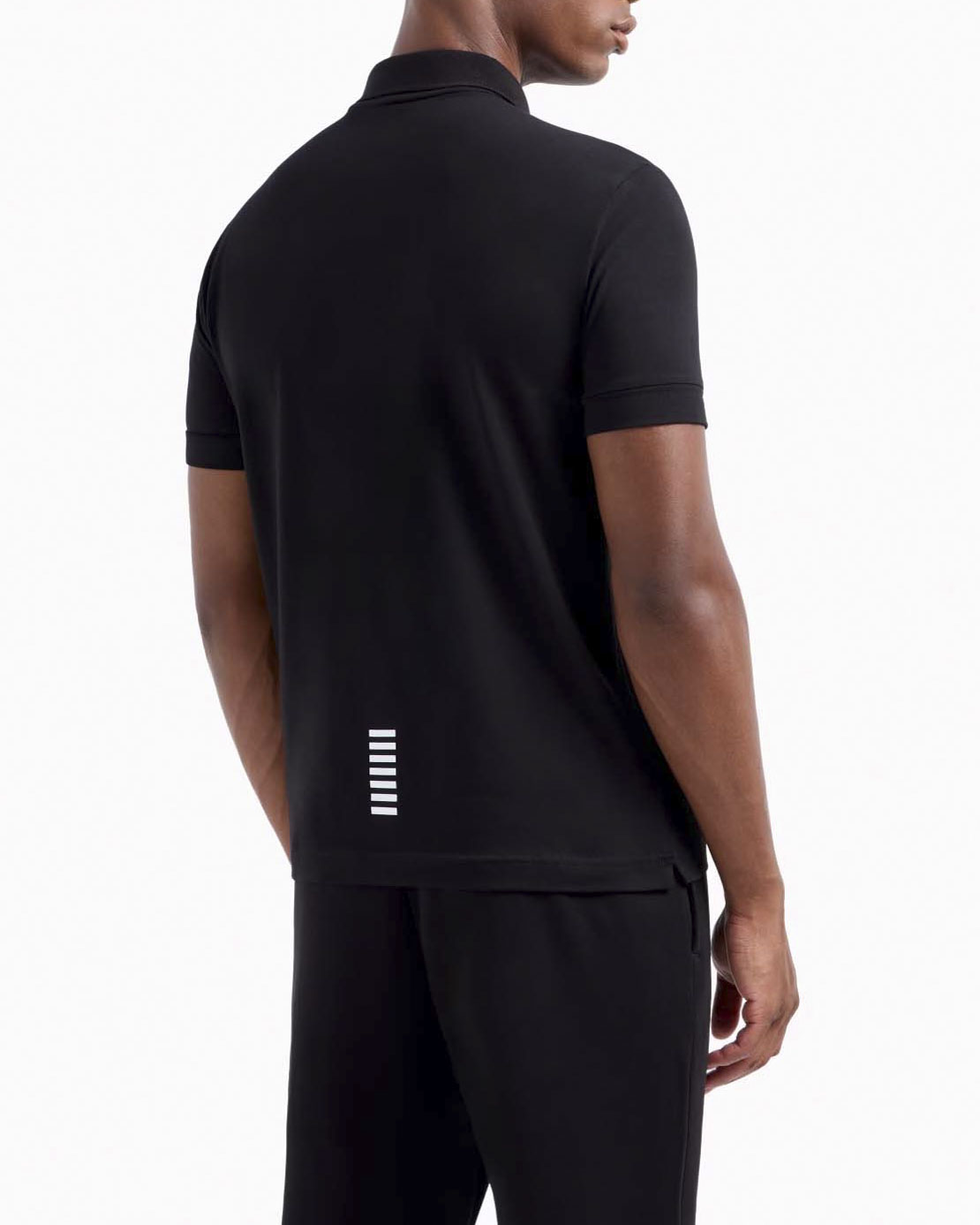 Polo EA7 nera in jersey di cotone stretch con logo EA7 sul petto