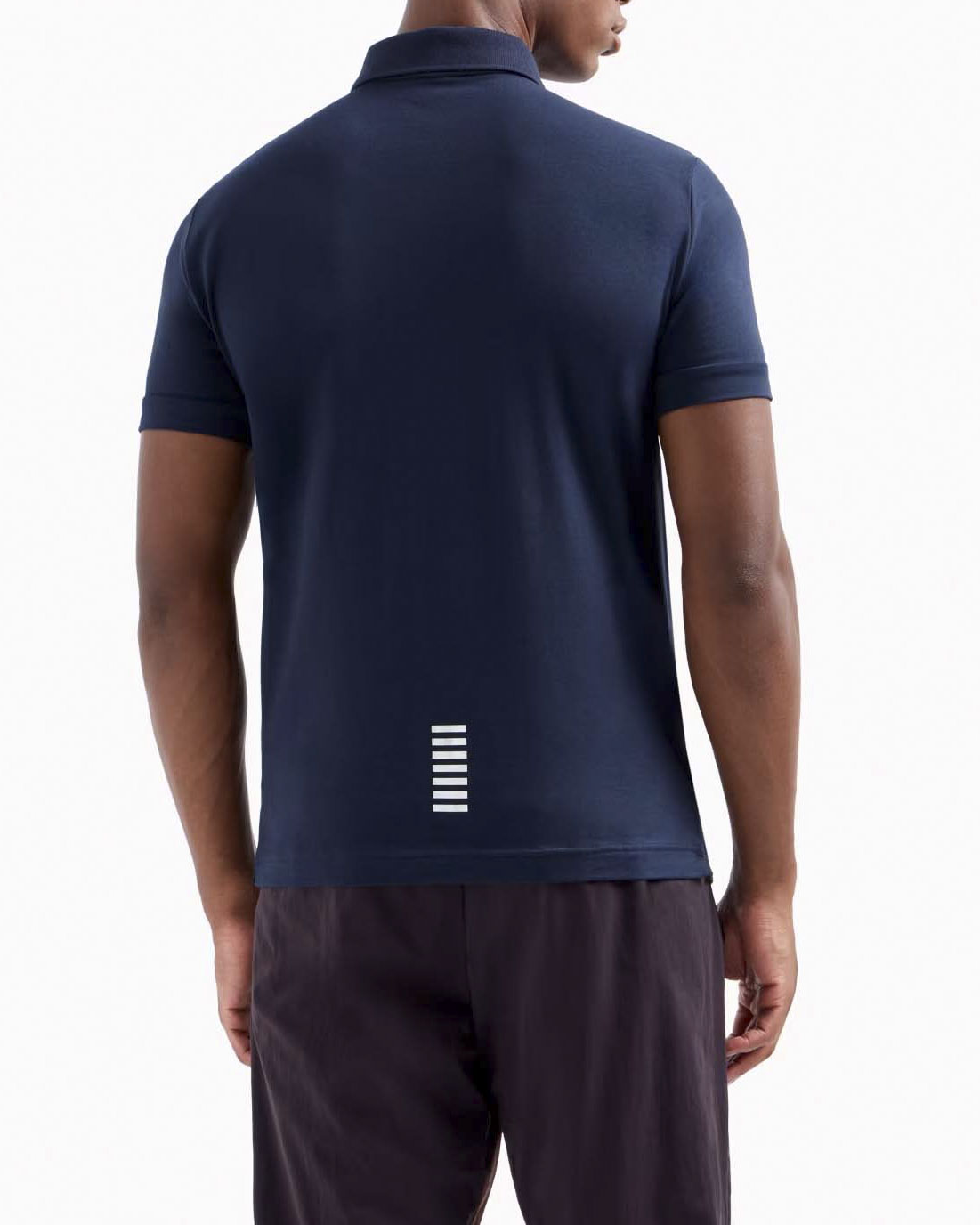 Polo EA7 blu in jersey di cotone stretch con logo EA7 sul petto