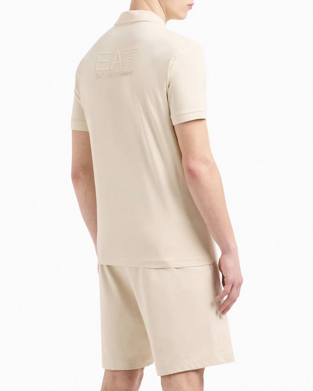 Polo EA7 beige in jersey di cotone stretch con logo in tono fronte e retro