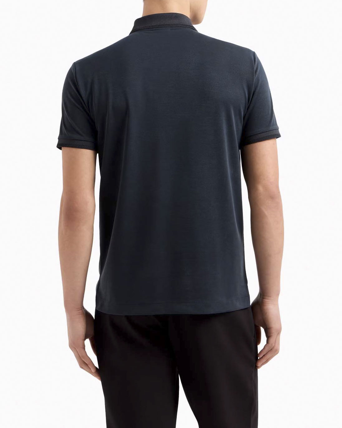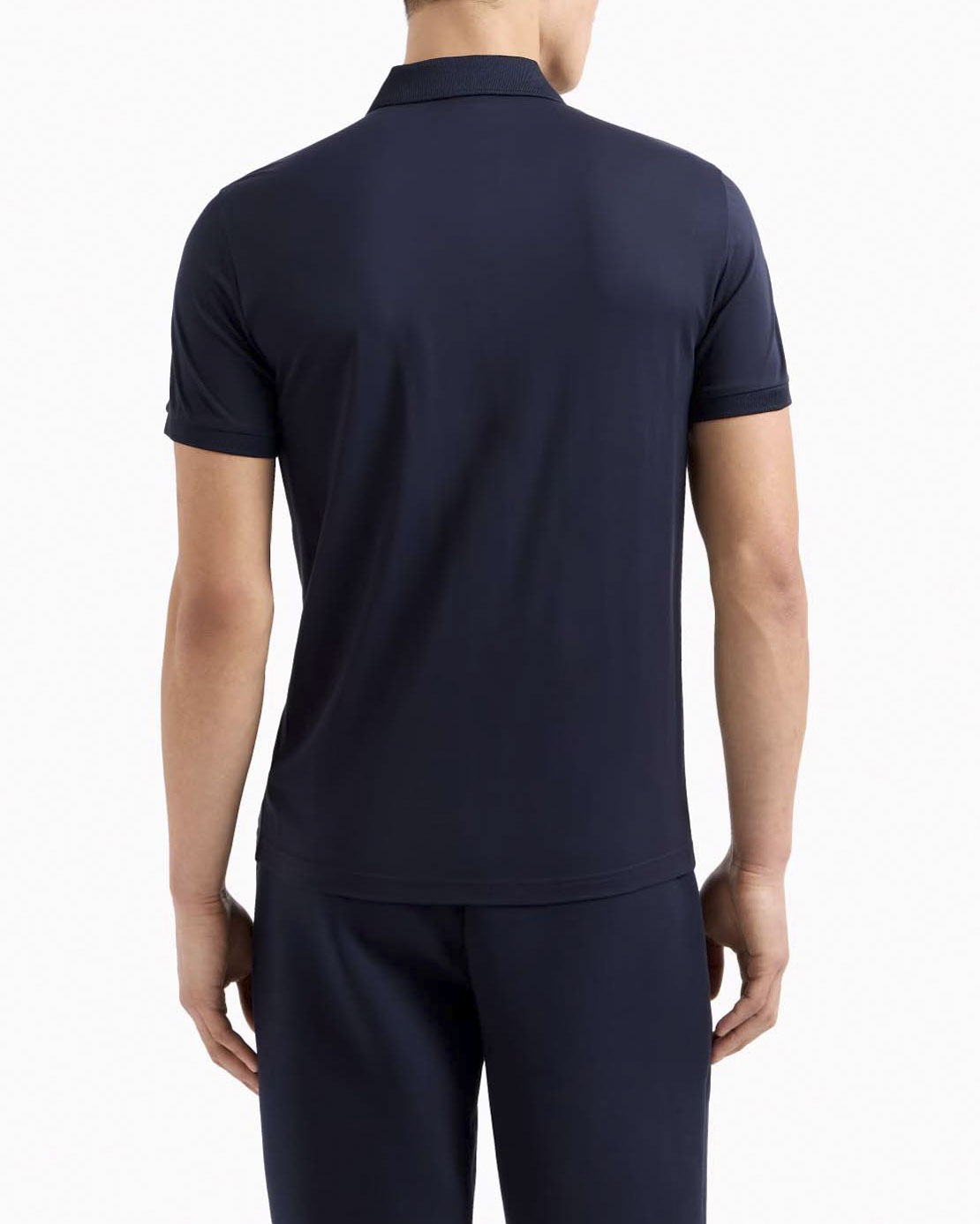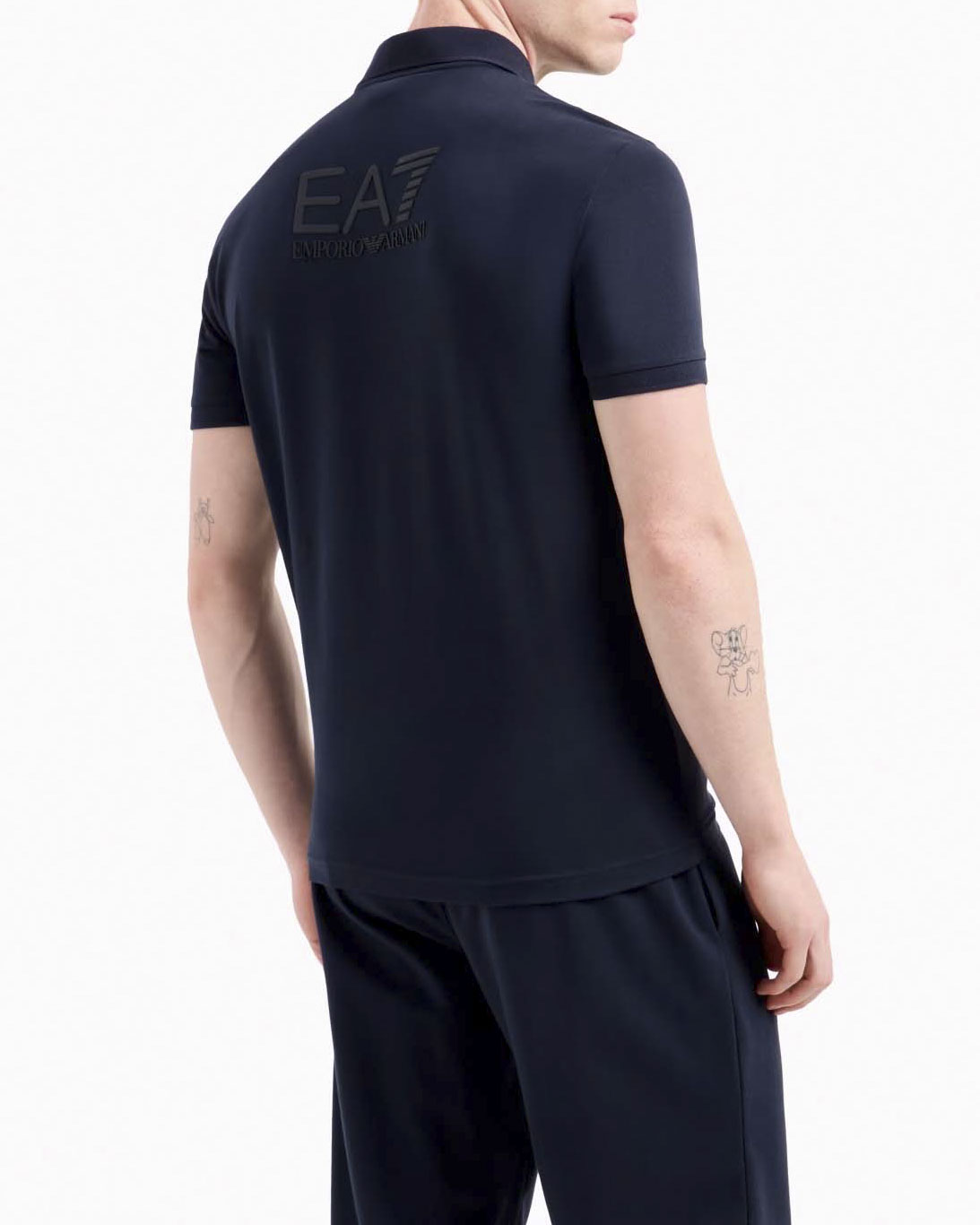 Polo EA7 blu in jersey di cotone stretch con logo in tono fronte e retro