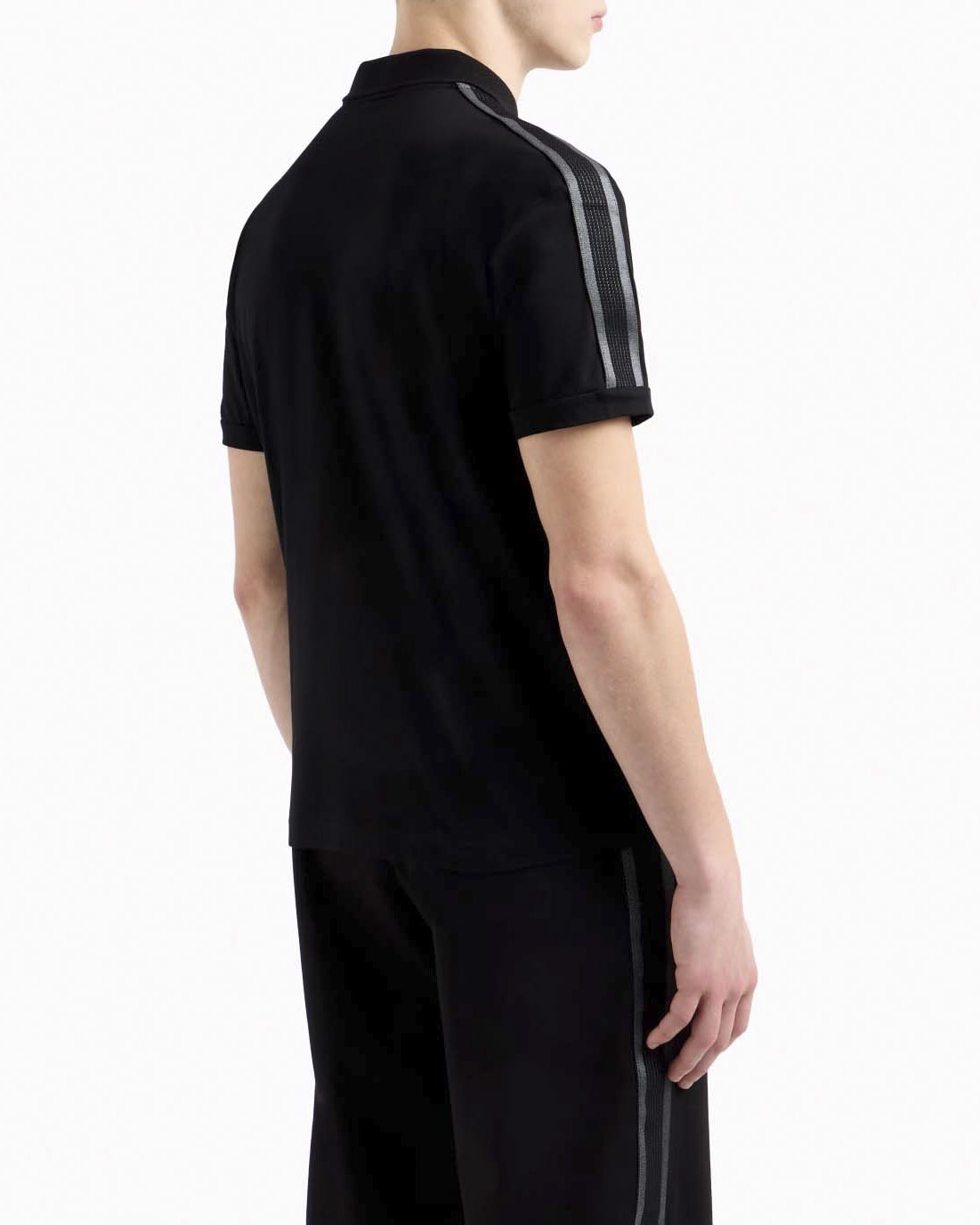 Polo EA7 nera in jersey di cotone con tape porta logo sulle spalle