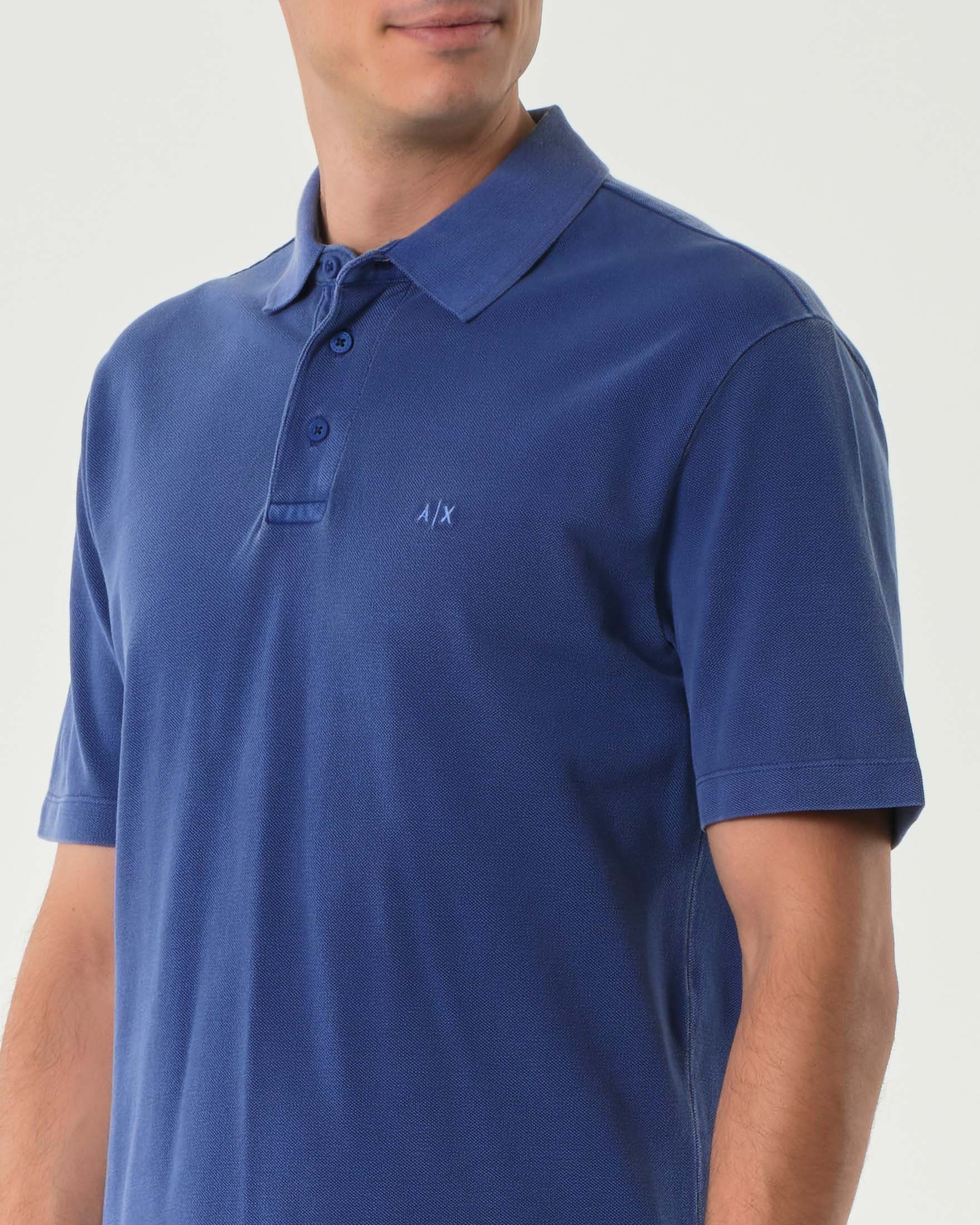 Polo mezza manica Armani Exchange blu royal in piquè di puro cotone regular-fit