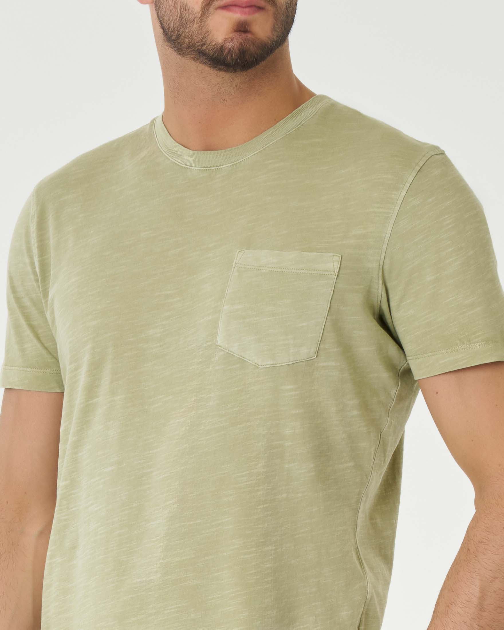 T-shirt verde salvia mezza manica in cotone fiammato con taschino al petto