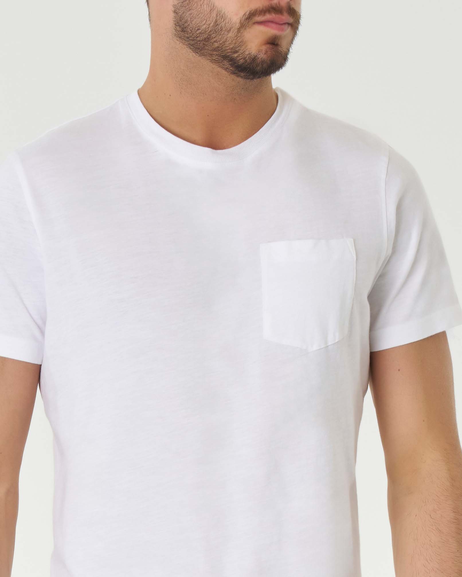 T-shirt bianca mezza manica in cotone fiammato con taschino al petto