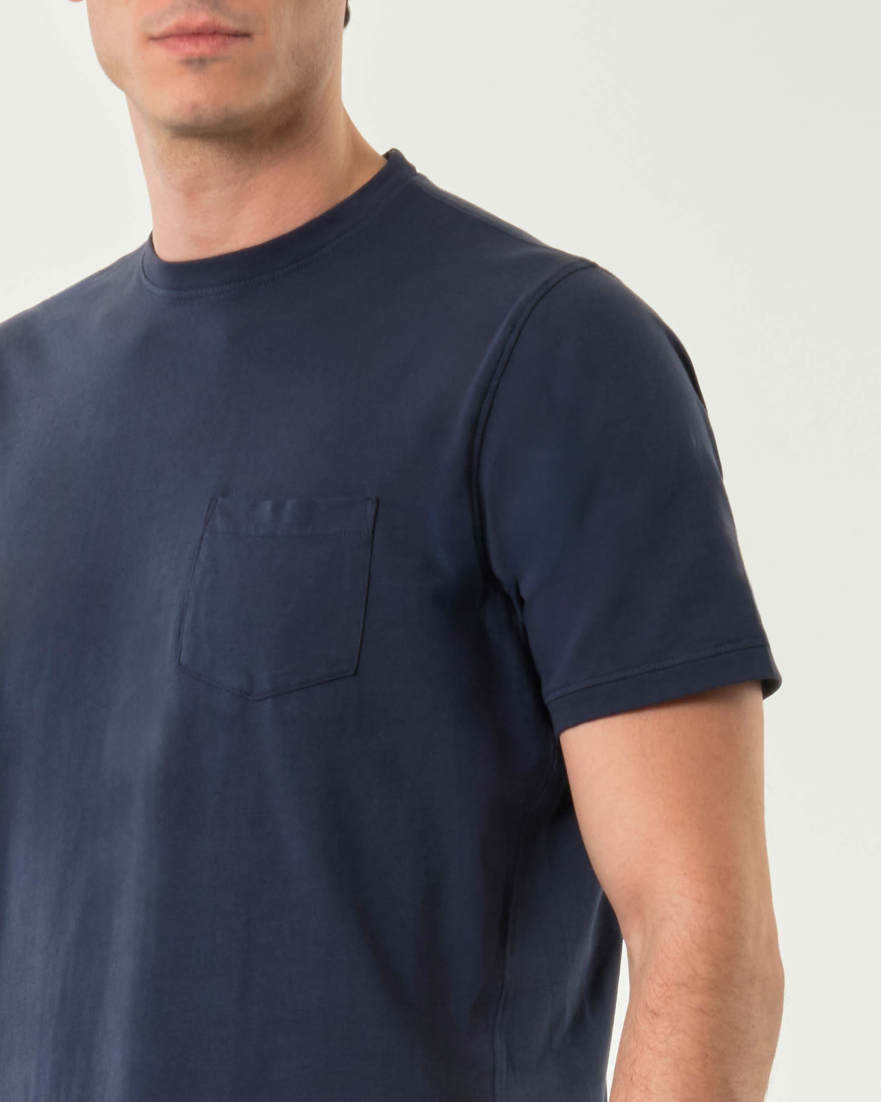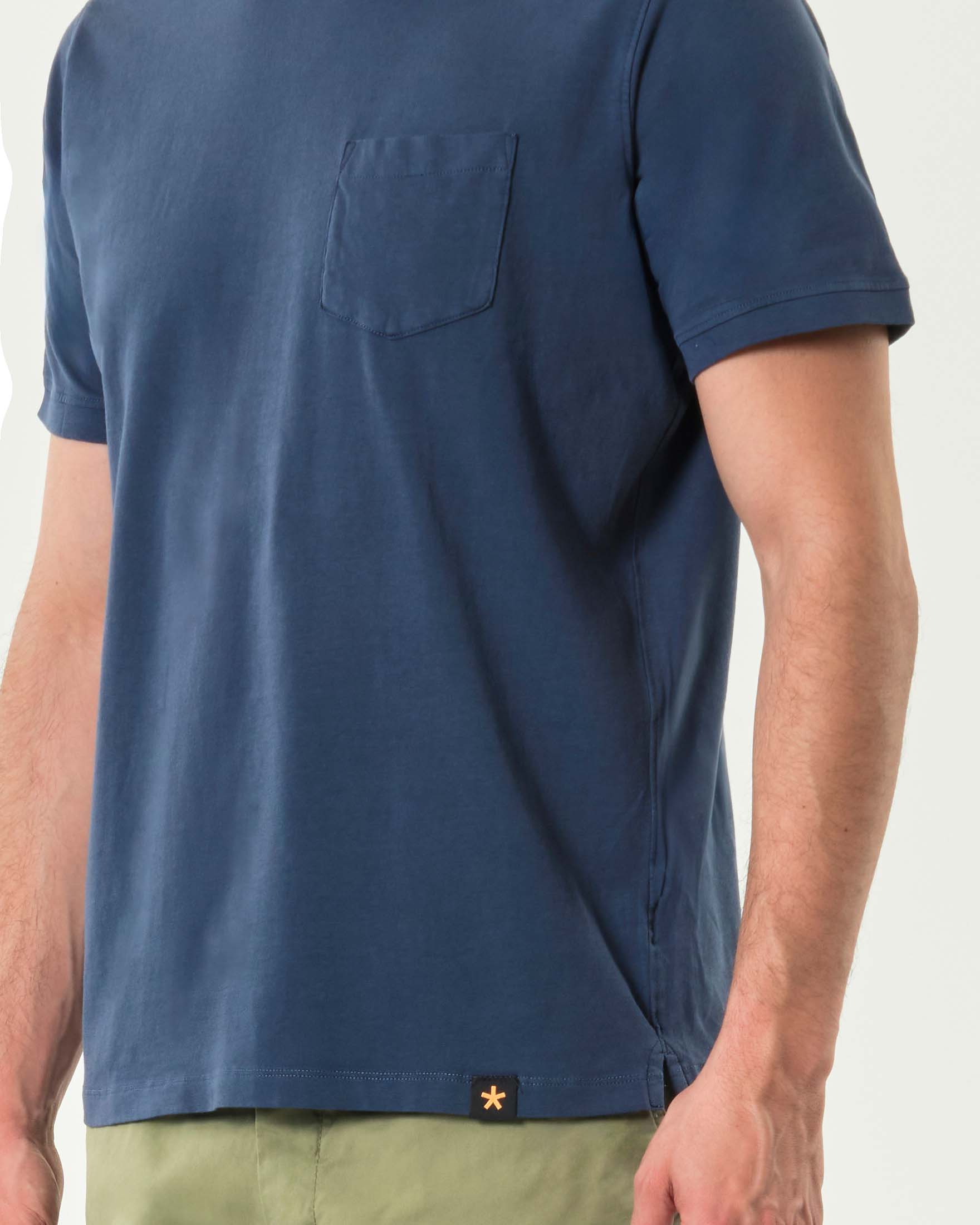 T-shirt mezza manica My Stuff blu indaco in cotone stretch con taschino