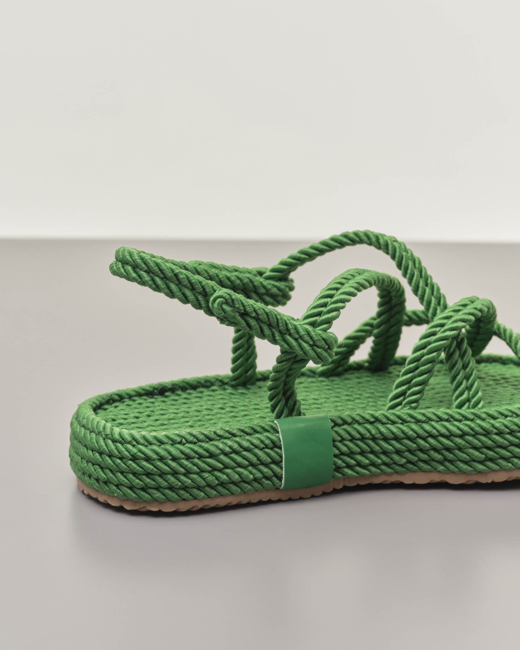 Sandali verde smeraldo in corda intrecciata con suola alta e doppie fascette incrociate