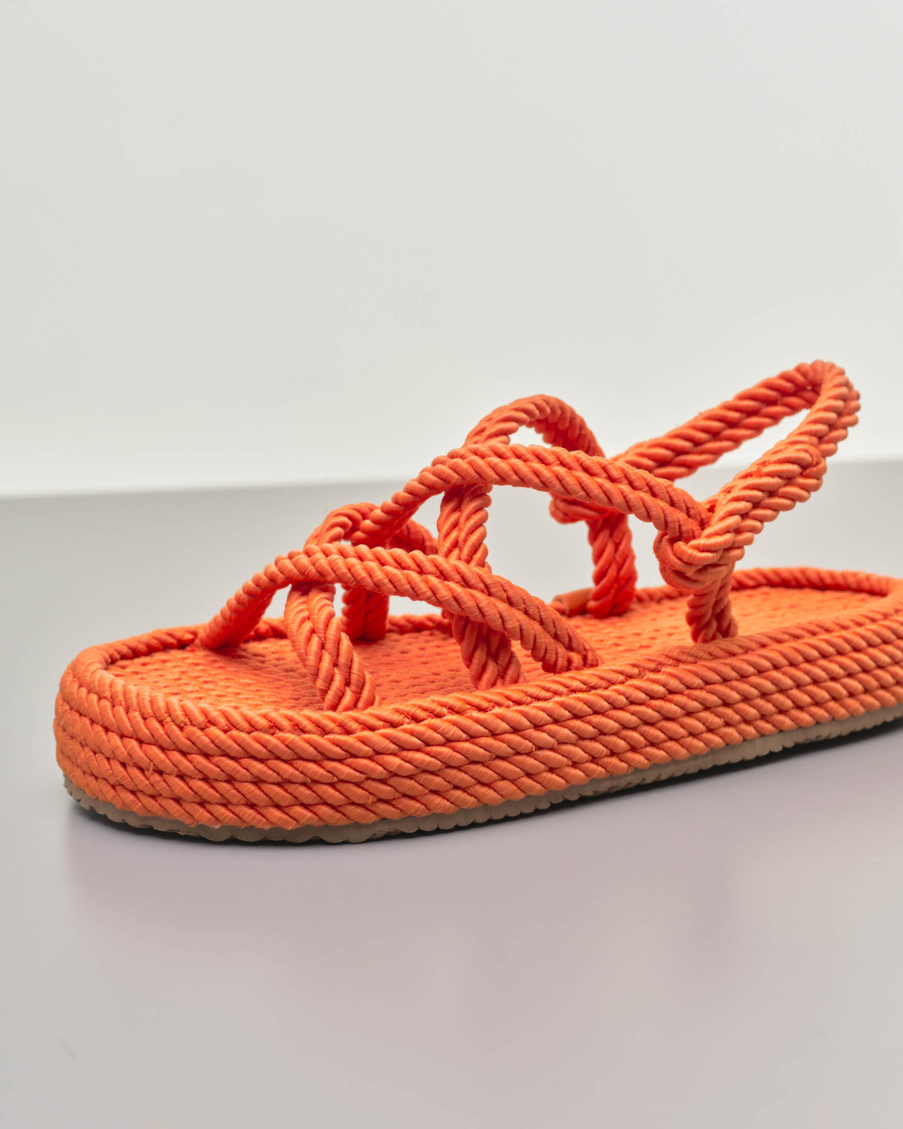 Sandali arancioni in corda intrecciata con suola alta e doppie fascette incrociate