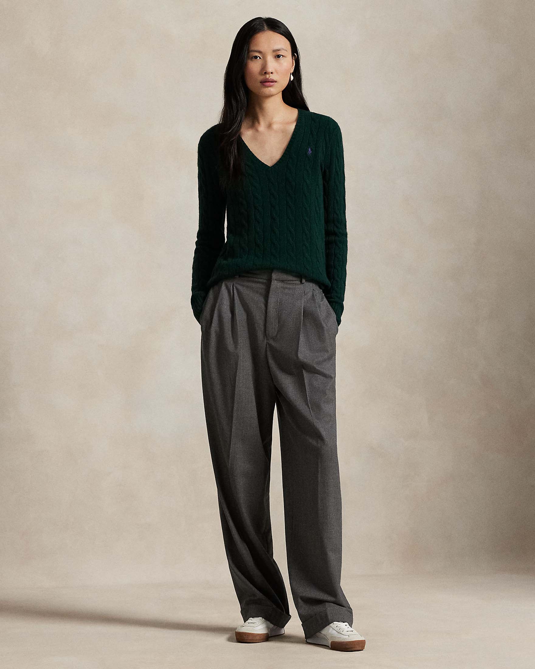 Maglioncino verde scuro Polo Ralph Lauren in lana e cashmere a trecce con scollo a V e logo ricamato...