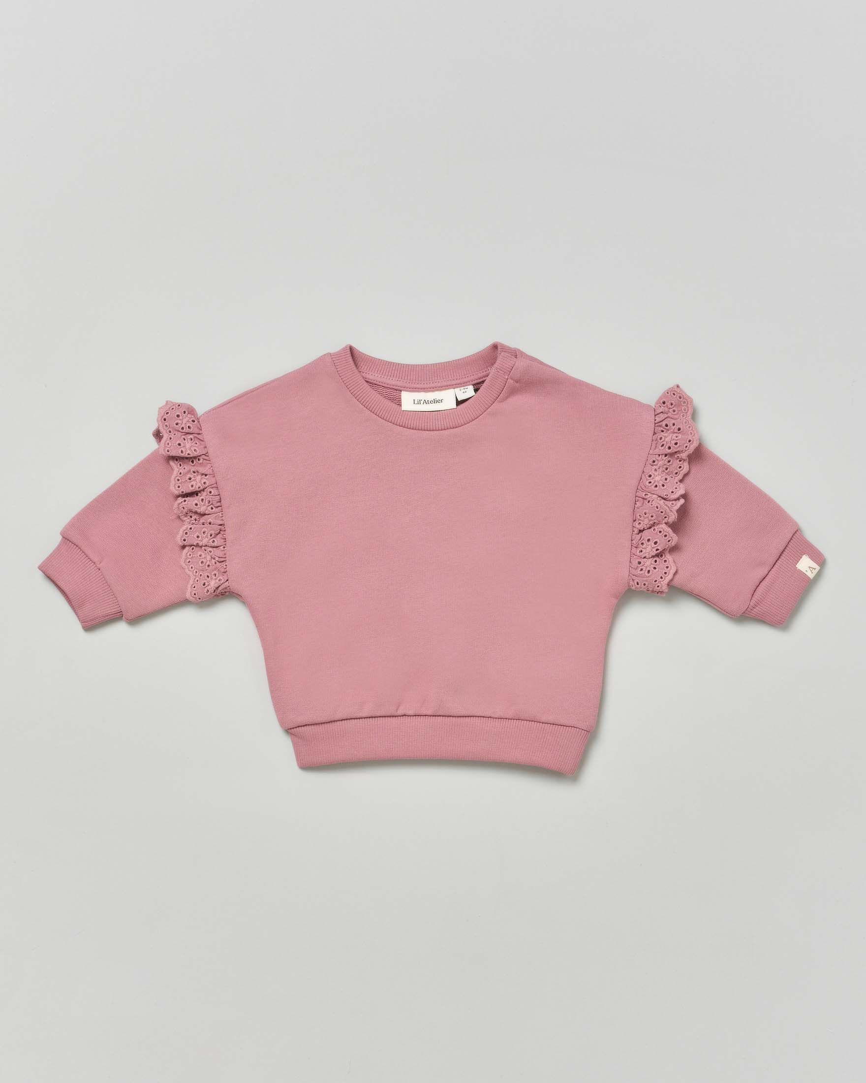Felpa malva in cotone con rouches in sangallo 1-18 mesi