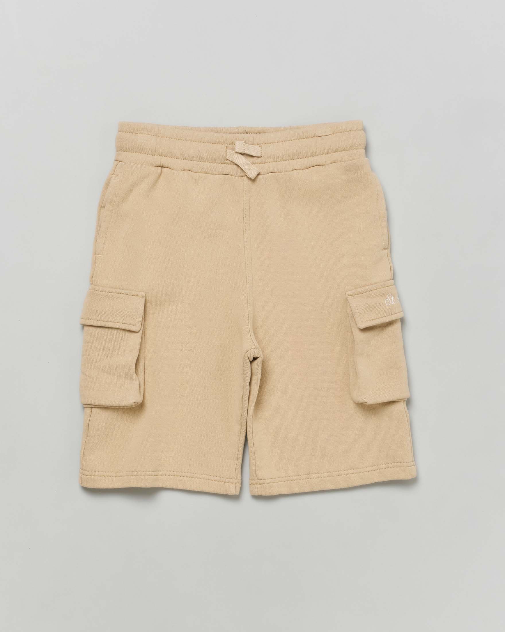 Bermuda color sabbia cargo in felpa di cotone con coulisse