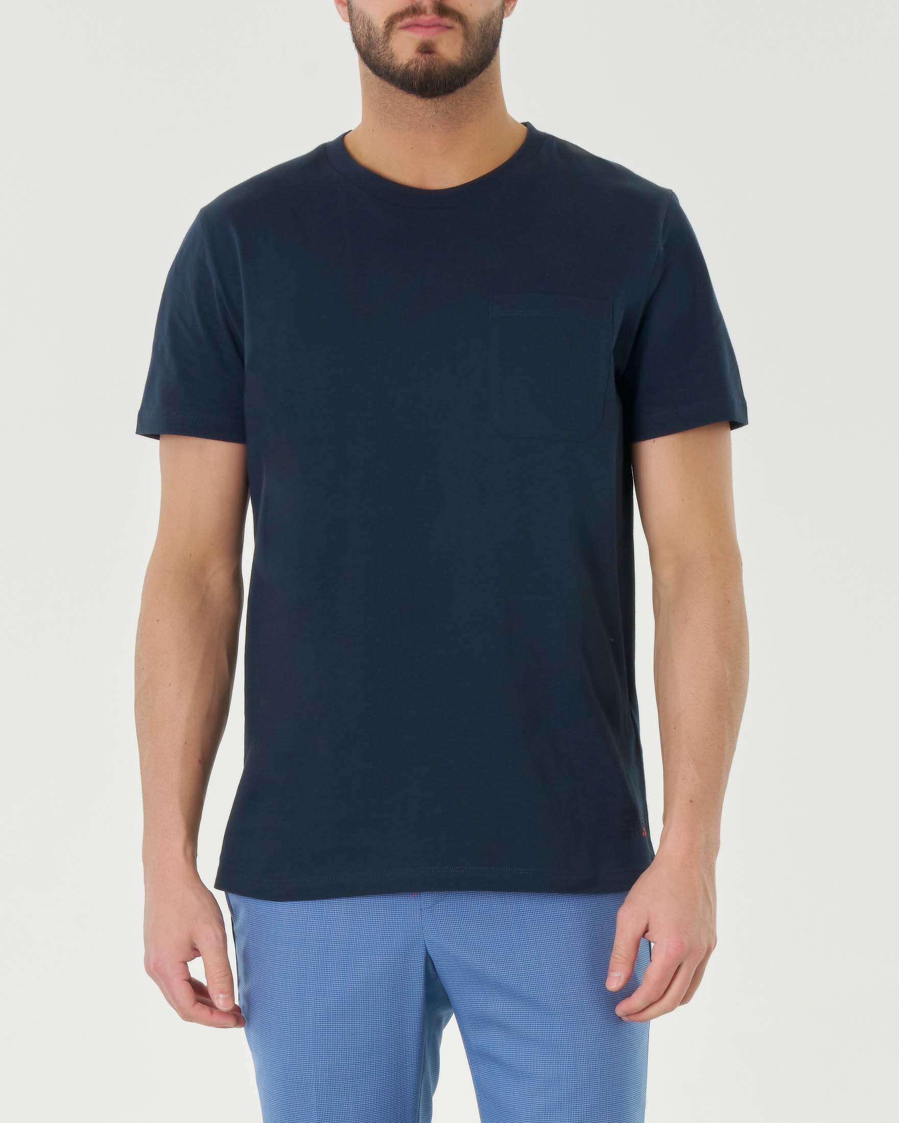 T-shirt blu mezza manica in puro cotone con taschino al petto