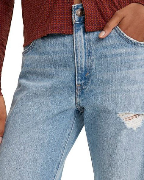 Jeans dalla linea wide vestibilità oversize in puro cotone a vita media. Modello cinque tasche con con etichetta logo cucita sulla tasca posteriore. Salpa in pelle logata sul retro, chiusura con patta. Cinturina in tessuto in coordinato annodabile in vita.