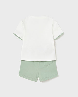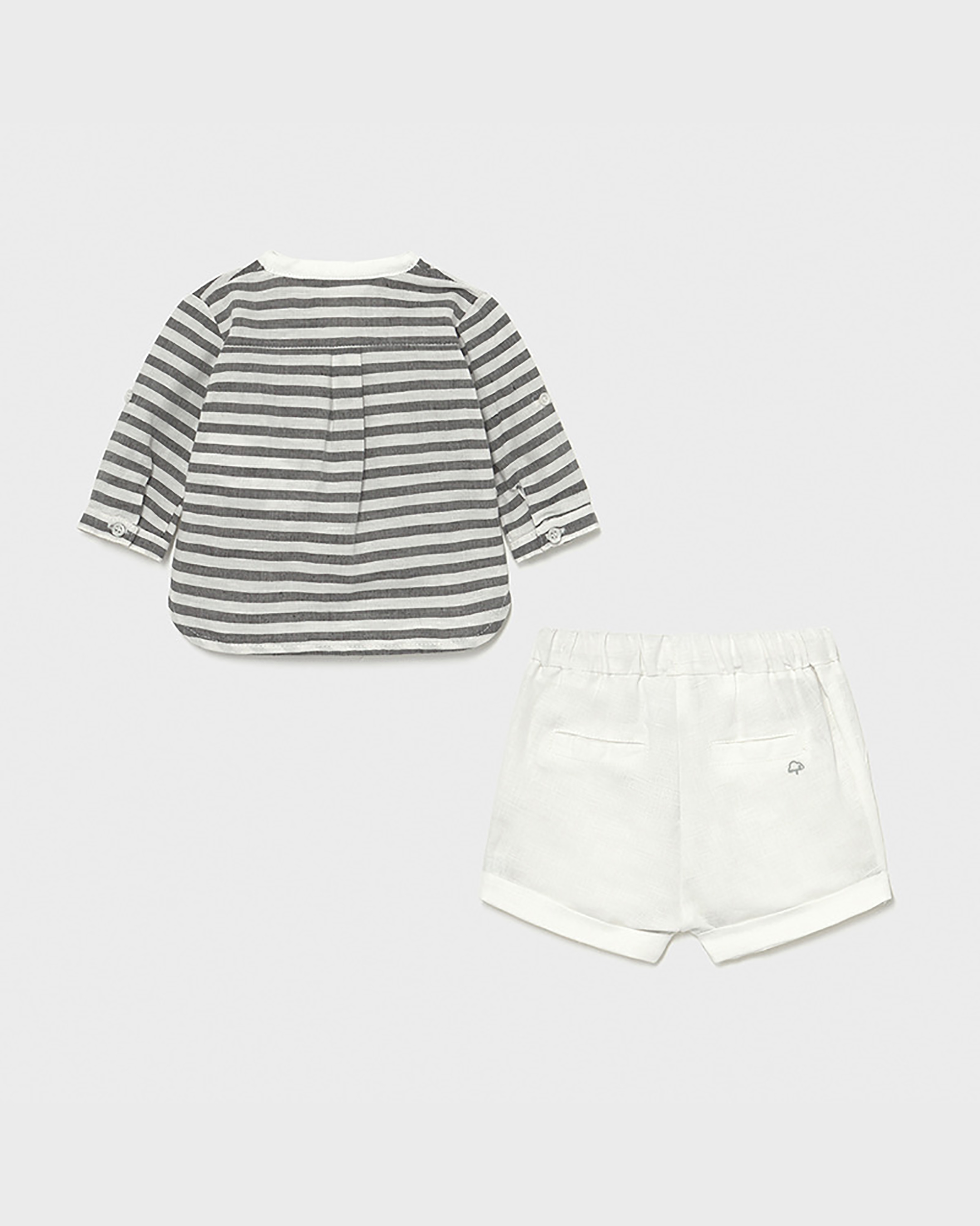 Completo in cotone stretch a tre pezzi avio e panna -30%