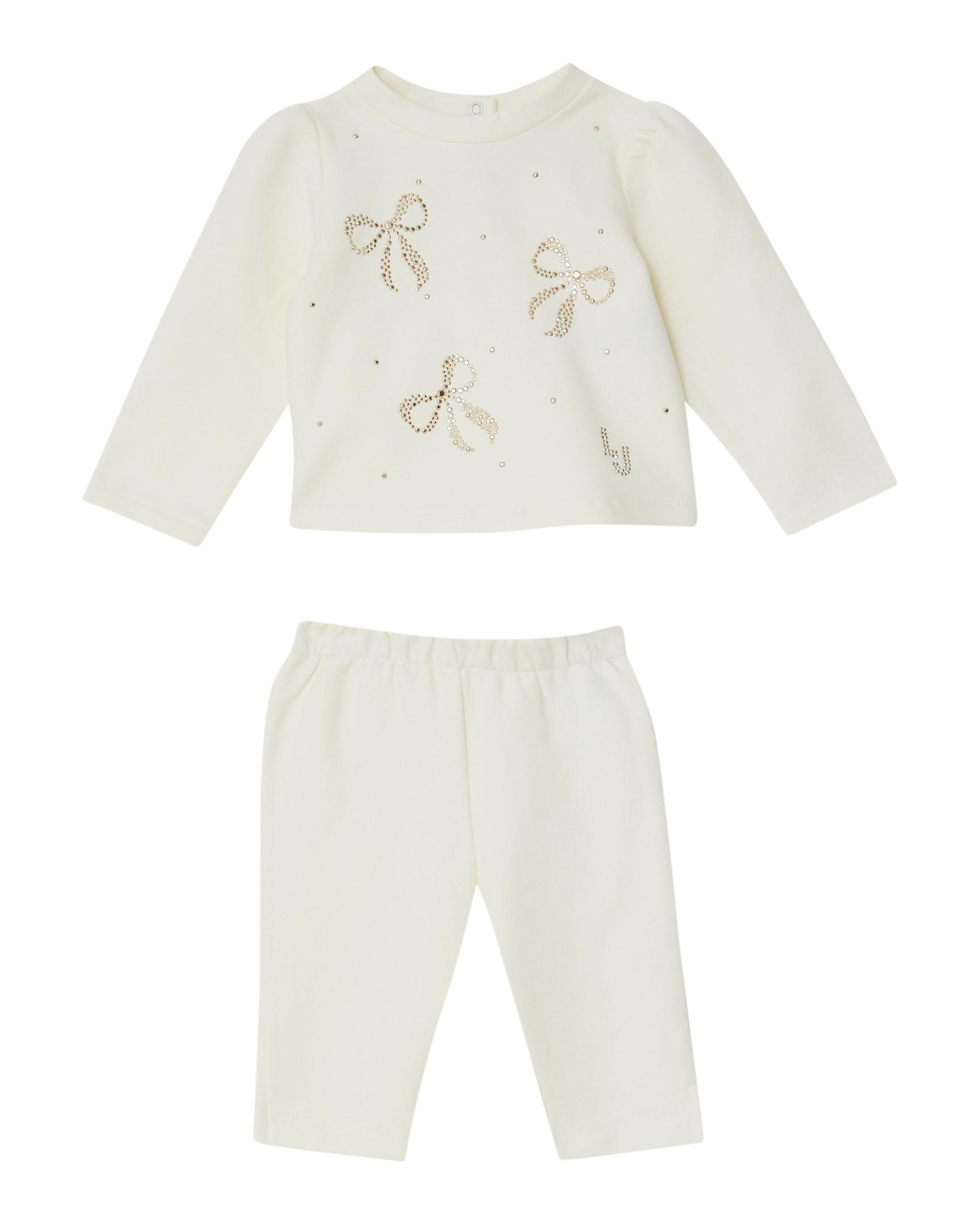 Completo Liu Jo bianco in cotone stretch con fiocchi in strass dorati -50%