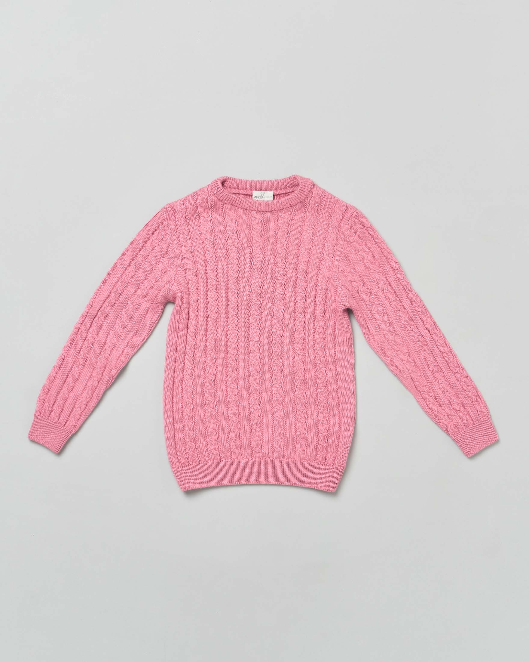 Maglia fucsia girocollo in pura lana merino con lavorazione a trecce -20%