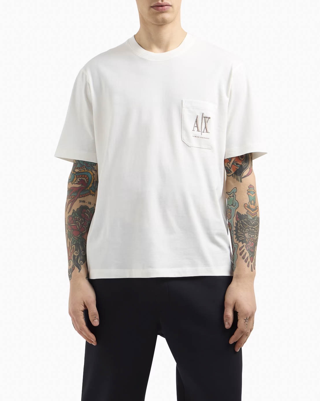 T-shirt mezza manica Armani Exchange bianca con taschino e logo AX al petto