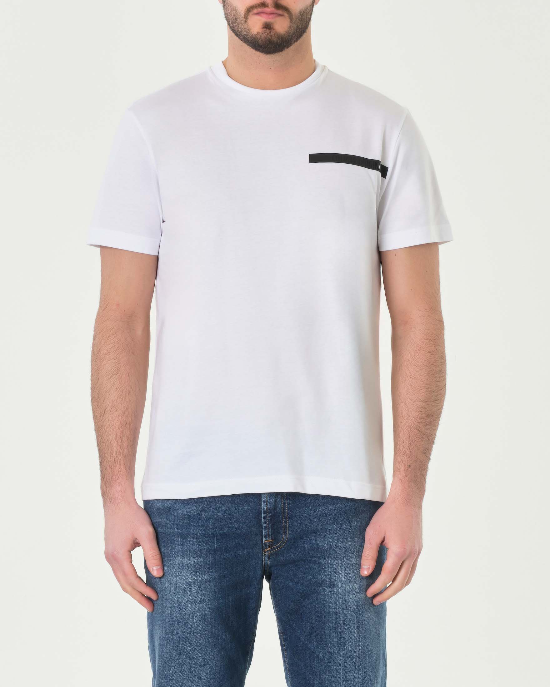 T-shirt bianca mezza manica con fascetta nera gommata porta logo sul petto