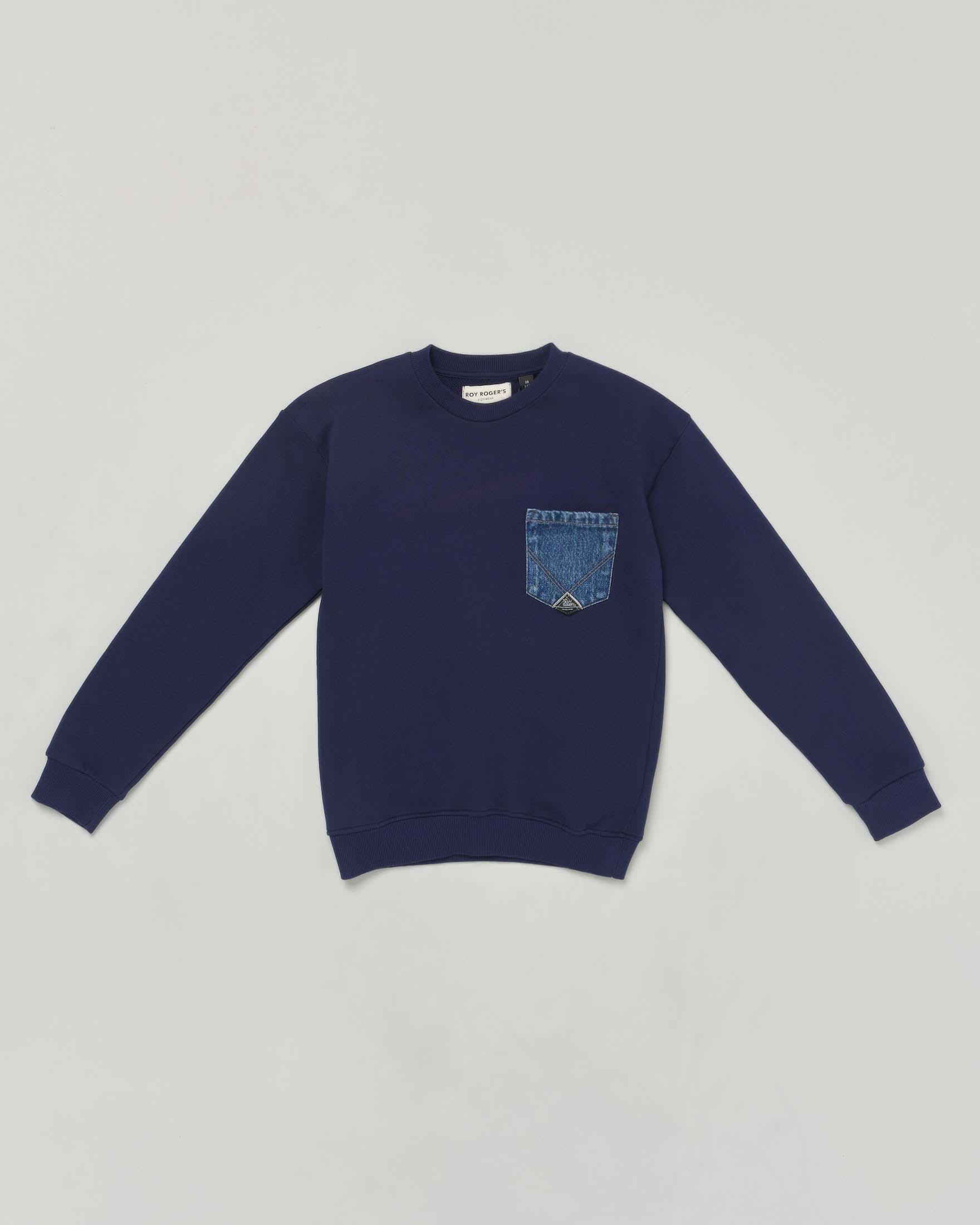 Felpa Roy Roger's blu girocollo in puro cotone con taschino jeans -30%